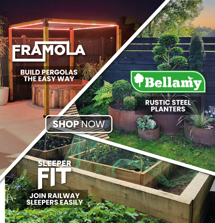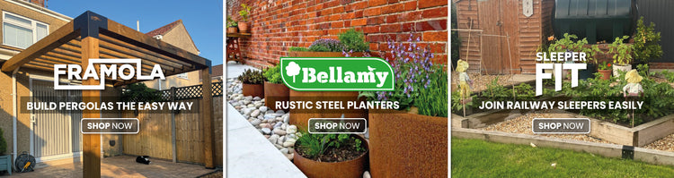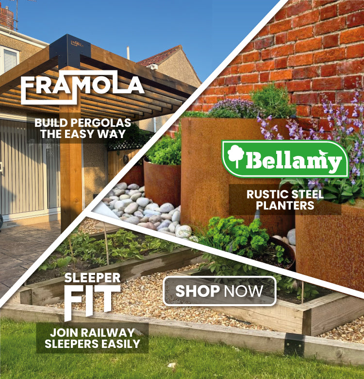 Start your next outdoor project with our Framola Pergola Brackets, perfect for building strong, stylish pergolas and garden structures, or choose our SleeperFit Sleeper Brackets to create secure raised beds, retaining walls and landscaping features. Add character to your garden with Bellamy Rustic Steel Planters, designed to develop a beautiful weathered patina over time.