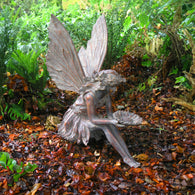 • Fergus McArthur Fairy Sitting Aged Verde Statue for Gardens