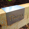 Once you have installed your SleeperFit LightGauge planter and added all of your seed for your veggie-growing adventures, just take one of these markers, write on it with a Sharpie or similar pen, and slot it over the edge. We also offer one that already says "Beans" in case you've decided to grow your own beans. We also have a custom option available where we can cut the lettering out for you in a similar style to the cut-out on the "Beans" option.