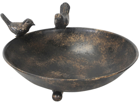 Rustic Cast Iron Bird Bath with Bird Decoration
