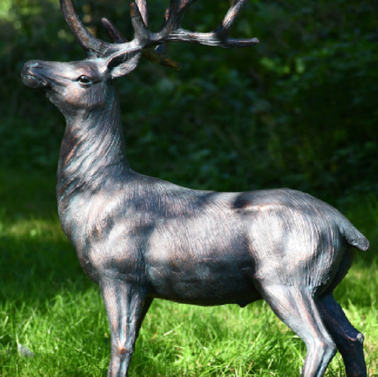 Fergus McArthur Large Standing Stag Bronze Effect Statue This Large Stag Garden Statue from the Fergus McArthur collection of Natural Life Sculptures is truly a masterpiece, showcasing a majestic Large Standing Stag in a moment of serene contemplation as it gazes into the distance....- Regular price