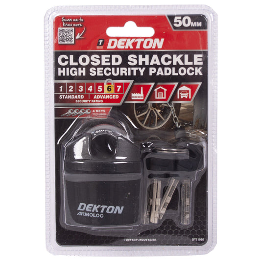High Security 50mm Closed Shackle Padlock This High Security 50mm Closed Shackle Padlock is the ideal choice for securing residential and commercial properties, garages, motorcycles, and factories. Featuring a durable aluminium body with a waterproof plastic coating, it’s designed to withstand the elements while...- Regular price