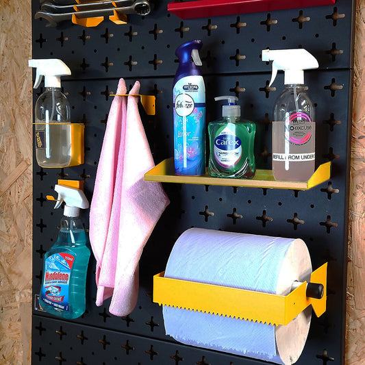 Nukeson Tool Wall - Tear-Away Blue Roll Holder with Shelf Attachment Compatible with our Nukeson Tool Wall Panels, this attachment allows you to store and easily dispense Blue Roll. To operate, simply pull the Blue Roll to the desired length, then use the small serrated...- Regular price