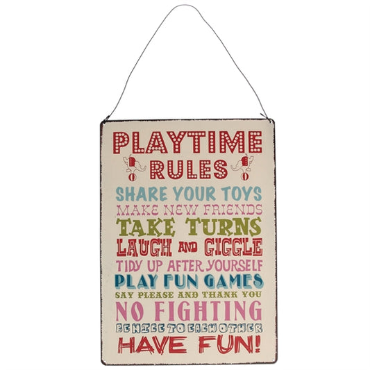 Kids Bedroom Playtime Rules Hanging Metal Sign Brighten up your home and inspire great behaviour with this colourful metal sign featuring playful "Playtime Rules." A must-have for any family home, this vintage-style sign offers ten top tips for harmonious play, making it an ideal...- Regular price