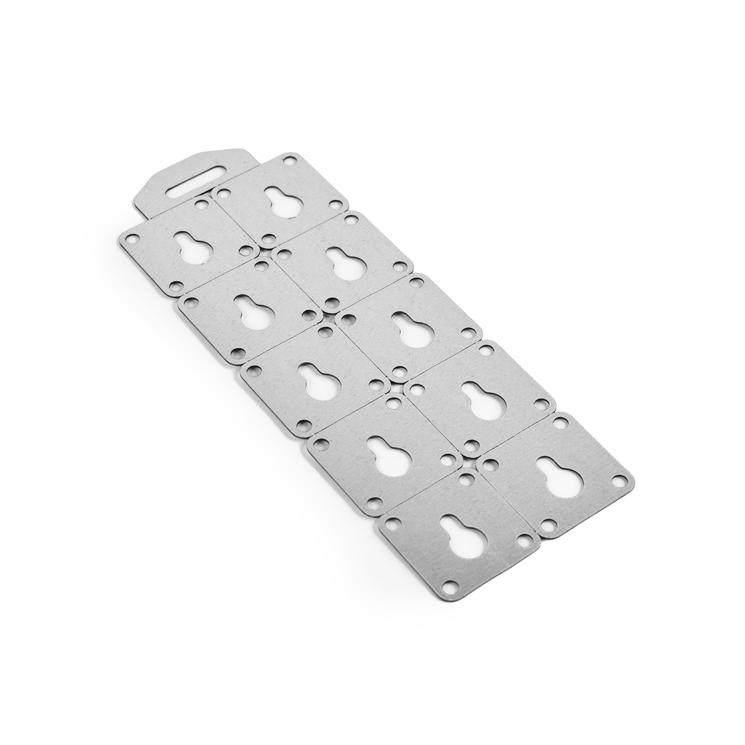 The Keyhole Hanging Plate Break-Away Bracket Sheet offers a simple and effective solution for hanging pictures, signs, or custom creations. With 10 brackets conveniently stored on a single sheet of metal, this product ensures you always have the right fixing to hand. The innovative design allows for easy storage and quick access, making it a practical addition to any toolbox or workshop.