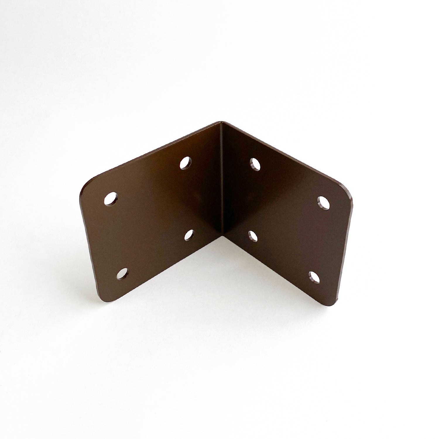 Each corner bracket is 85mm x 85mm x 80mm and is made from 2mm Heavy Duty British Steel. There is 85mm either side of the 90° bend. This bracket comes with a clean brown or black coating which offers a durable and hardwearing surface. It also looks stunning when installed. Or you can choose our bare Galvanised Steel version which provides additional rust resistance.