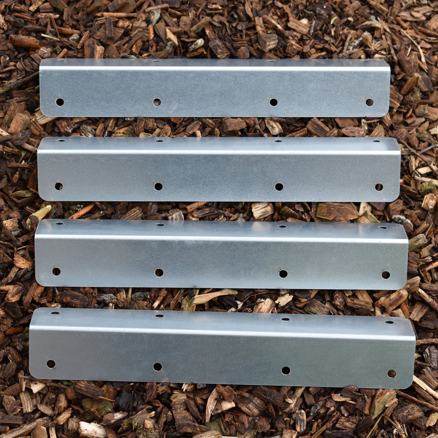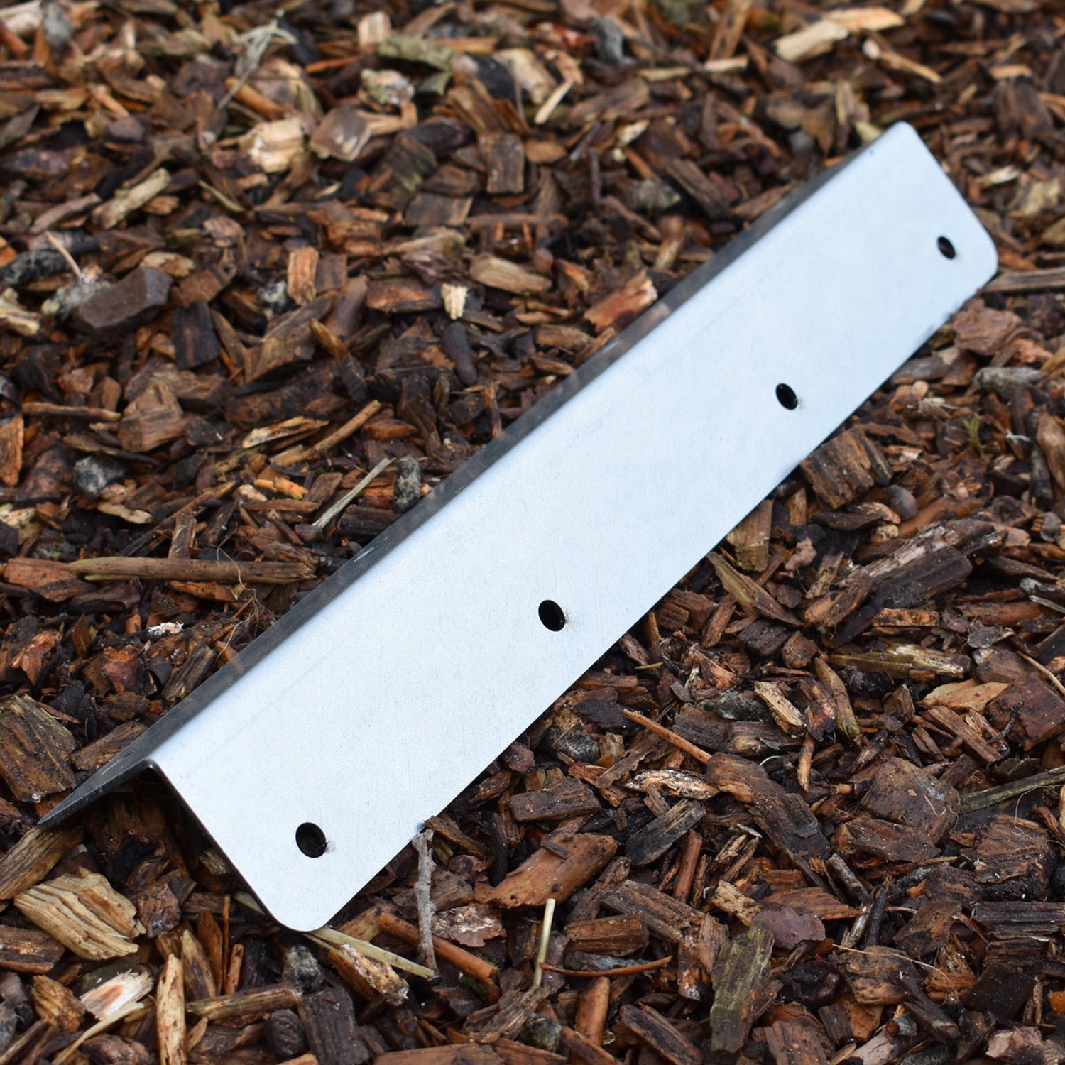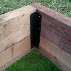 These simple corner brackets should be used to secure timbers at 90° joins. Simply press the sleepers together, and then use the bracket to secure them together on the internal corners. They can also be used externally for both decorative and structural purposes. The bracket features 8 holes, 7.5mm diameter, meaning 4 screws can be used on each piece of timber for an extra-secure installation.