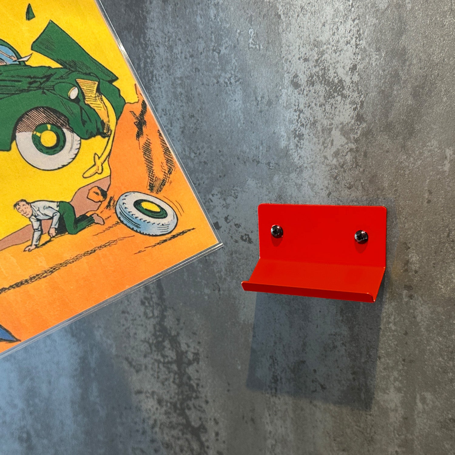 Each holder features a sloped design that allows comic books and graphic novels to sit at an ideal viewing angle. A small front lip catches the bottom of the book, preventing it from slipping out. You simply slide the comic in from the side – the design holds it in place without scratching the cover. Mount just one for a clean and subtle display, or create a full gallery wall by lining up multiple holders.