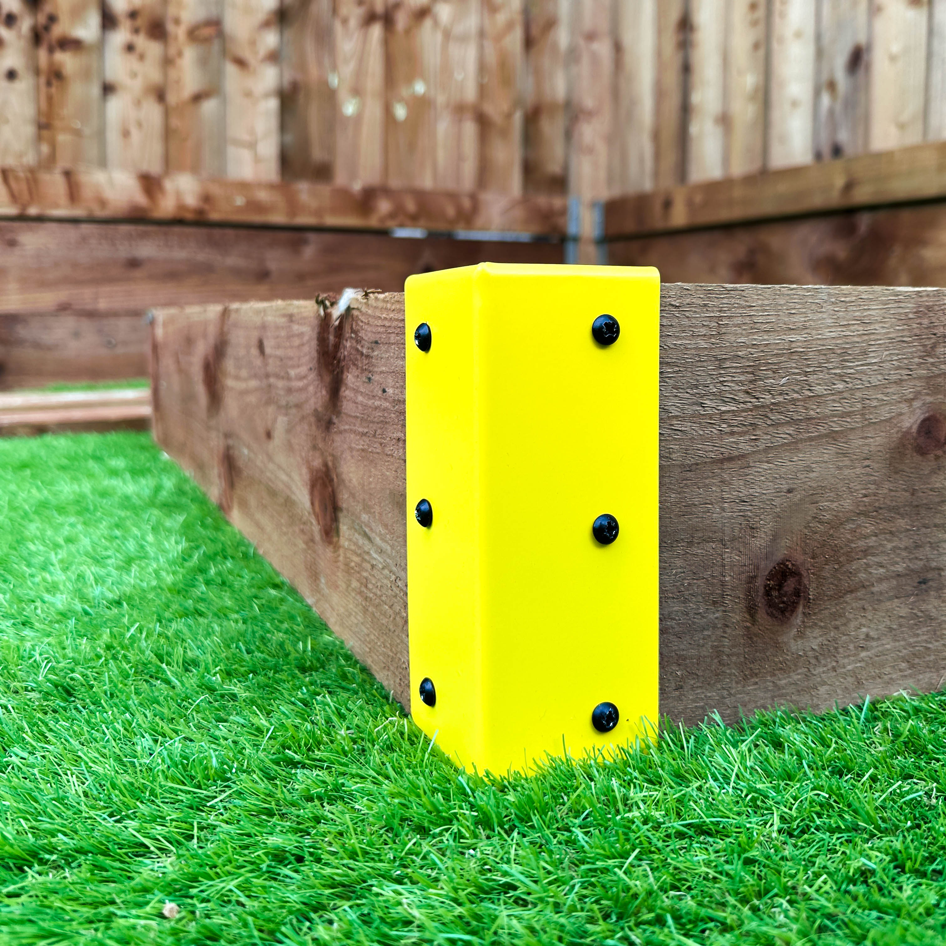 Each build your own sandpit bracket is made from British Galvanised Steel which is then powdercoated in a choice of 8 colours which add additional durability as well as a smooth and easy to clean surface. There are 4 bright colours available: Red, Blue, Yellow & Green. There are also 4 subtle colours which are also great for making planters with, Black, Brown, Dark Green and bare Galvanised Steel.