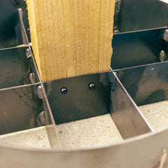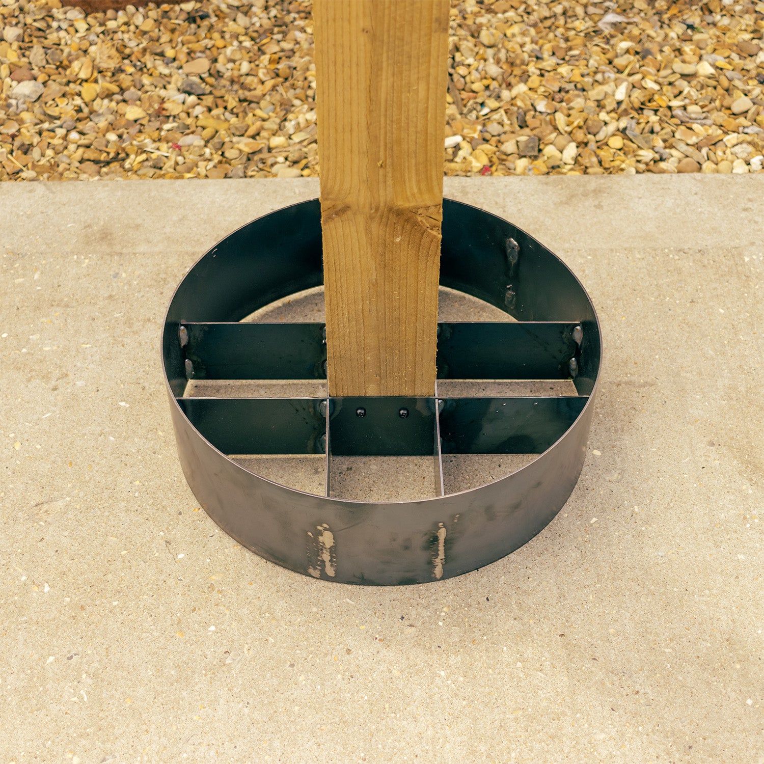 Whether installing a Pergola, or even just a post in your garden for a bird house or piece of signage, this product offers a beautiful solution for mounting fence posts! The circular planter is 120mm high and has a diameter of 400mm. The cross sections in the middle allow for a 100mm/4" fence post to be installed. The screw holes are staggered to allow you to use as many, or as few holes as required for your project's strength needs. The screw holes are each 7.5mm in size, making them perfect for use with Railway Sleeper Timber Screws.
