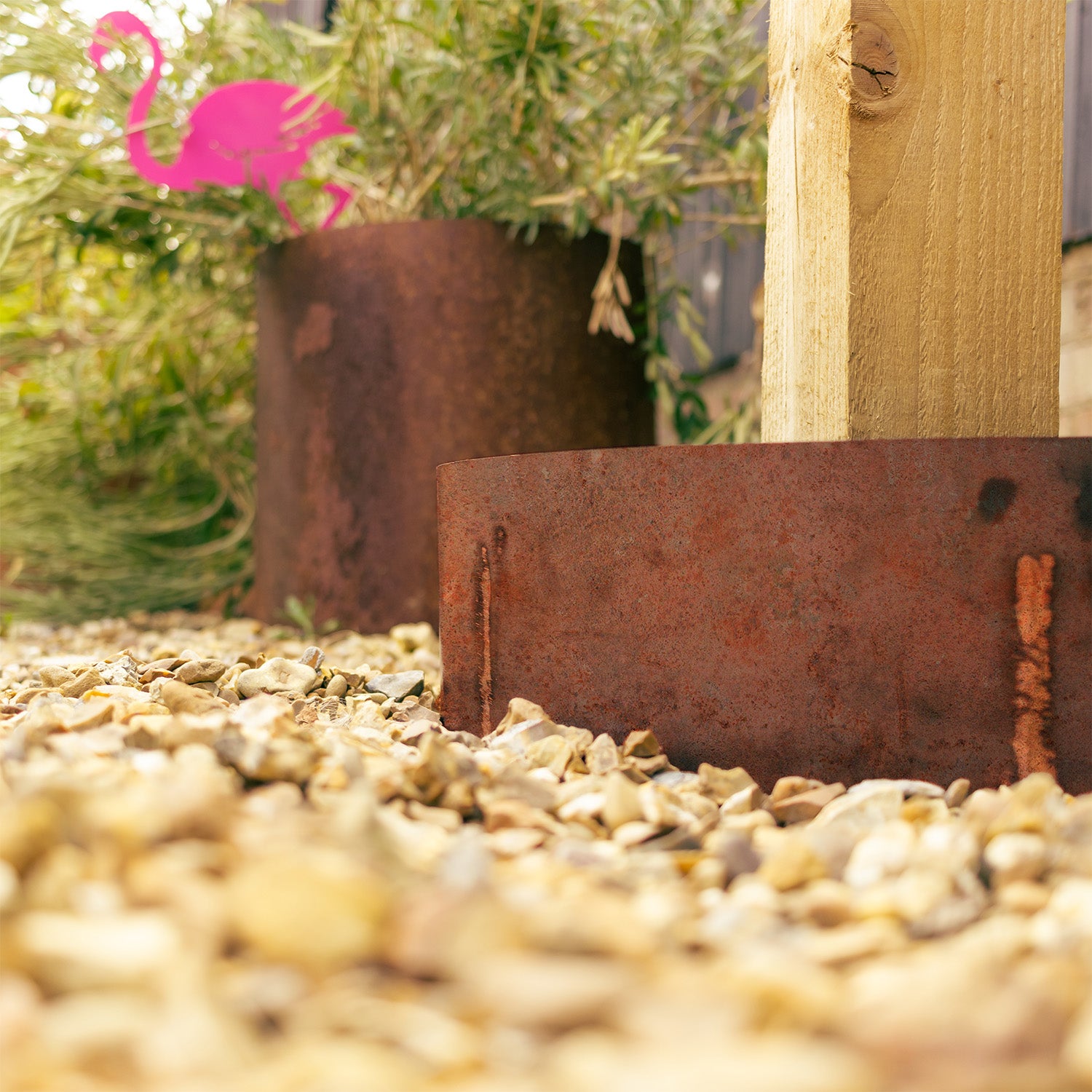 Want to install a post but think just a bracket at the base isn't enough? How about a planter, combined with a post base, which allows you to fill the base with stones, plants and other decorative items? This product provides a solution for that as it combines a Bellamy Rustic Steel Circular Planter with a Post Base to provide a decorative and functional item!