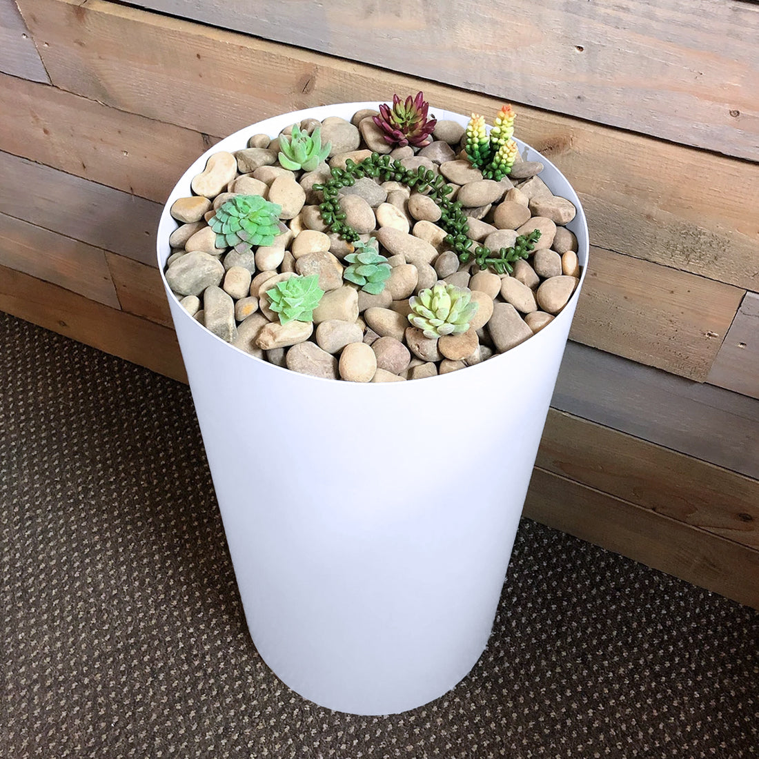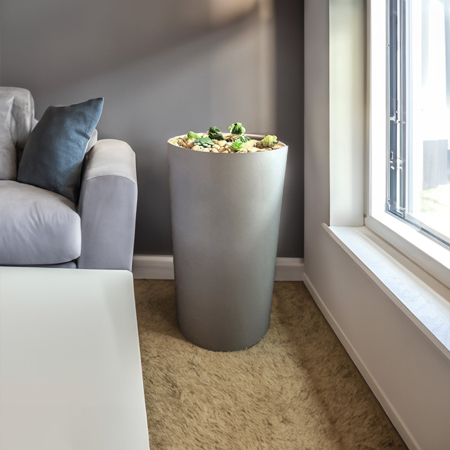 Transforming your indoor space into a captivating masterpiece is as simple as can be with Bellamy's Tall Circular Indoor Planter. Just fill it with decorative stones, nutrient-rich soil, and an array of vibrant succulents or other plants, and watch as it becomes an eye-catching feature that adds elegance to your home décor.
