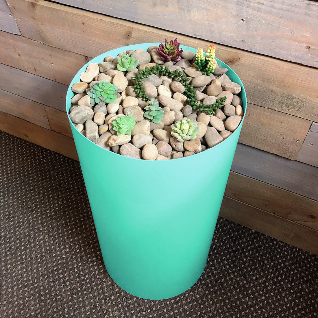 What sets Bellamy's Steel Circular Planter apart is its unique feature - the addition of a base set high up on the planter. This innovative design allows you to create a shallow bed of decorative stones within the planter, offering a cost-effective and hassle-free way to fill and adorn it. Alternatively, the planter can be effortlessly flipped over to accommodate a deep bed of soil, providing versatility to grow a variety of plants according to your preferences.