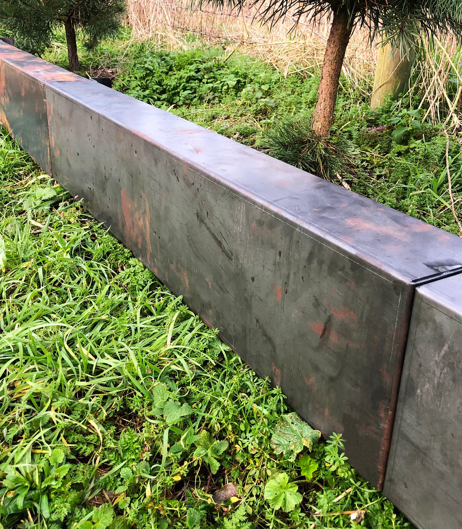 Each Sleeper is made from heavy duty British mild steel. The metal is not powder-coated or treated, allowing the bare finish to rust over time. Simply install in the formation you want with the provided stakes and sit back whilst it is exposed to the elements, forming a rustic patina for an aged, vintage look.