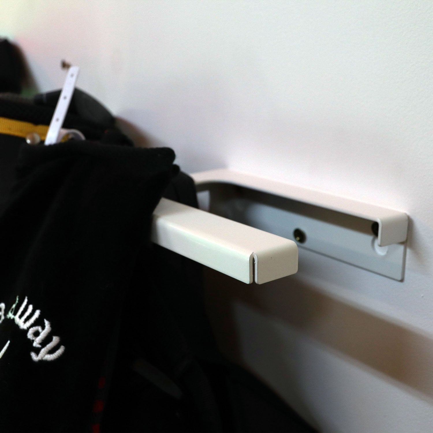 Installing the golf bag holder is quick and simple. It features two keyholes at the back for easy wall mounting - just pre-drill your screws and slot it into place. A smaller 6mm hole at the bottom allows for extra reinforcement if needed.
