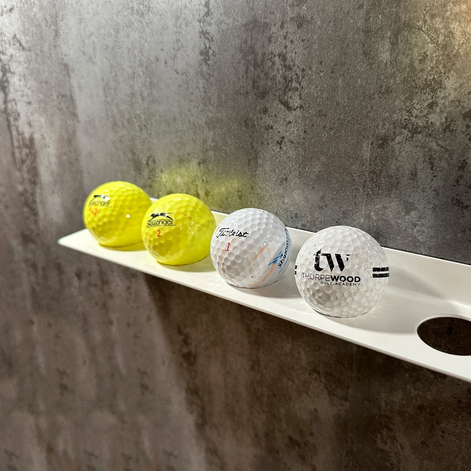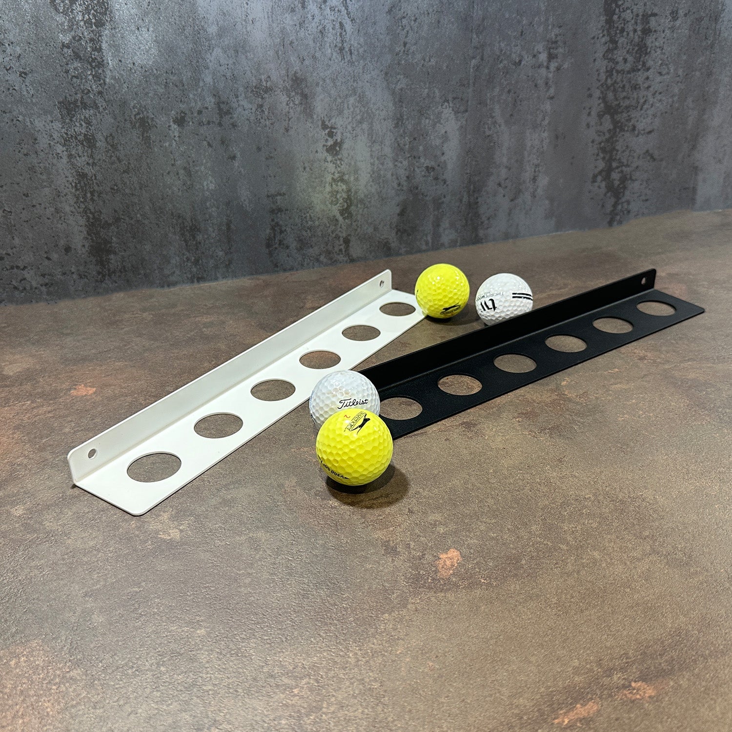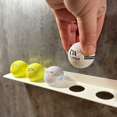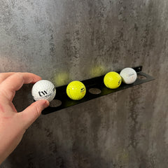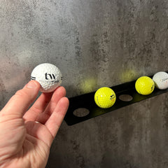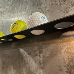 This bracket features six 28mm holes, each perfectly sized to securely hold standard golf balls. Its neat and understated design makes it an ideal gift for golfers, offering both practicality and a personalised display for special or winning golf balls.
