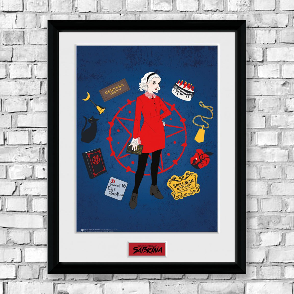 Step into the bewitching world of "Chilling Adventures of Sabrina" with this captivating framed collectors poster print. Featuring Sabrina and iconic items from the popular Netflix series, this pop-art style poster pays homage to the dark and enchanting universe of the show, which is based on the Archie comics.