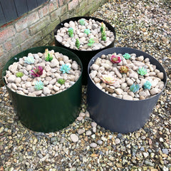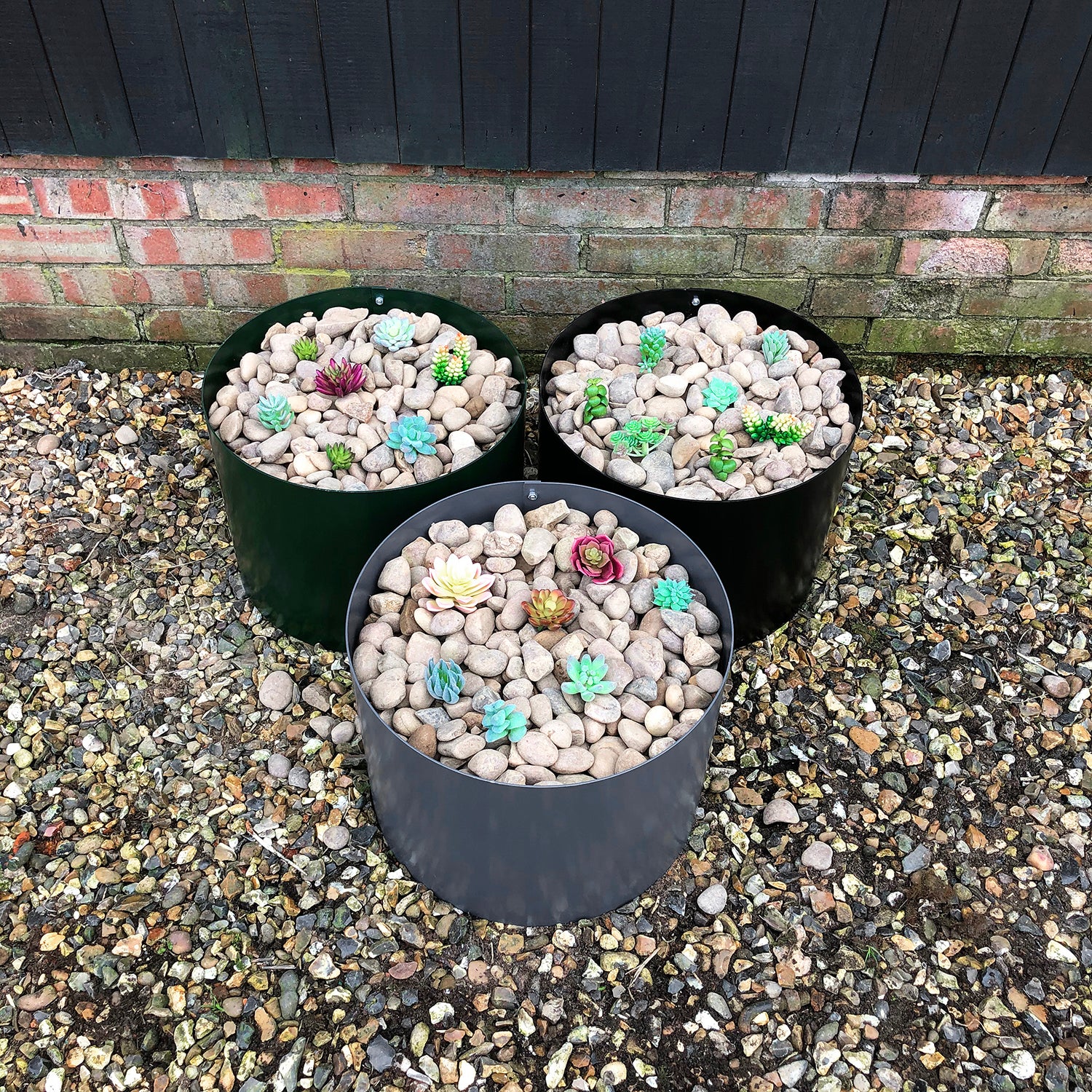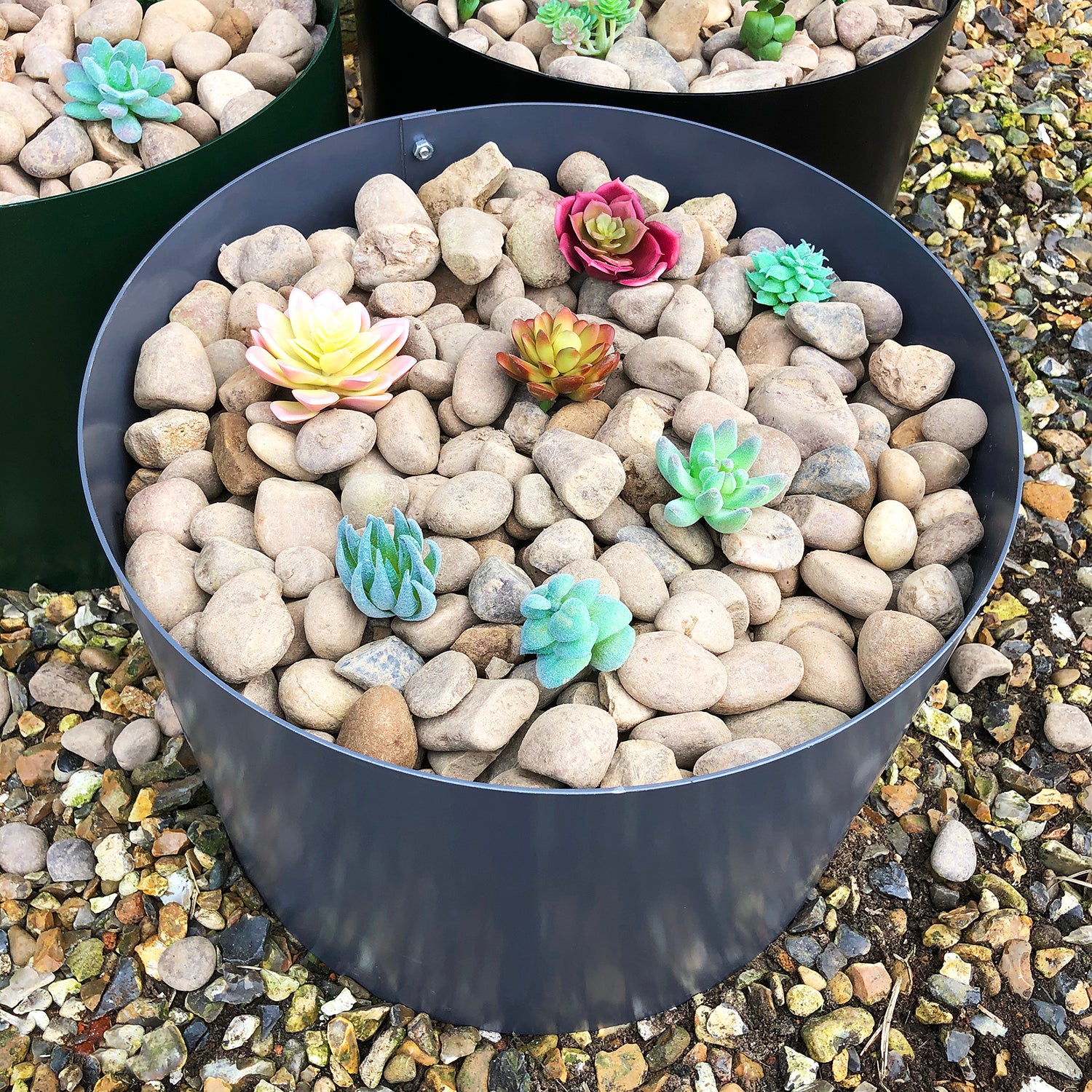 Each circular planter is made by our team in Norfolk from heavy duty British Steel. This ensures it is durable and strong and will hold up in bad weather.
