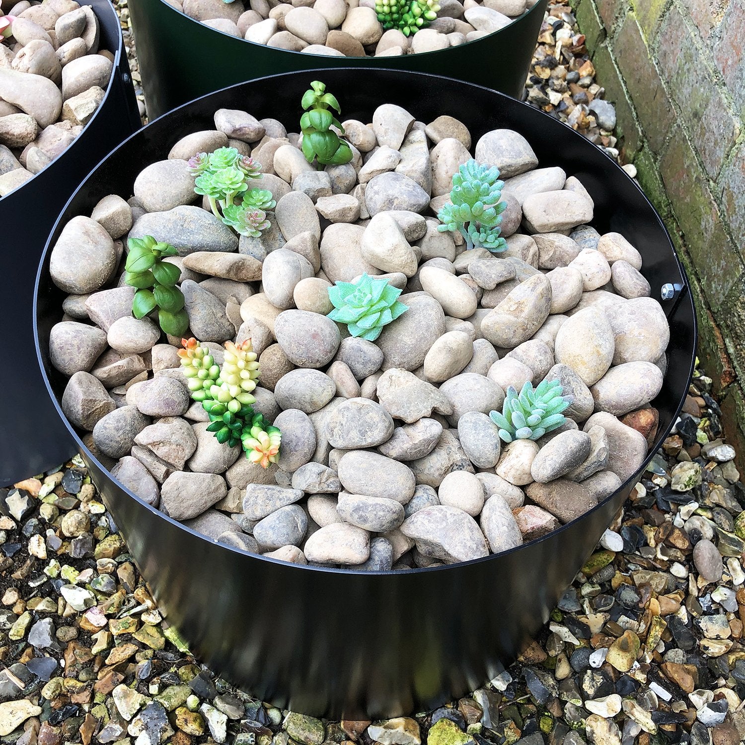 Why not add some stones to your circular planter and a few small plants, or add a small tree and fill it with soil? As there is no base on these you can use it on water features or even use it to create unique water features. The possibilities are endless with one of these planters.
