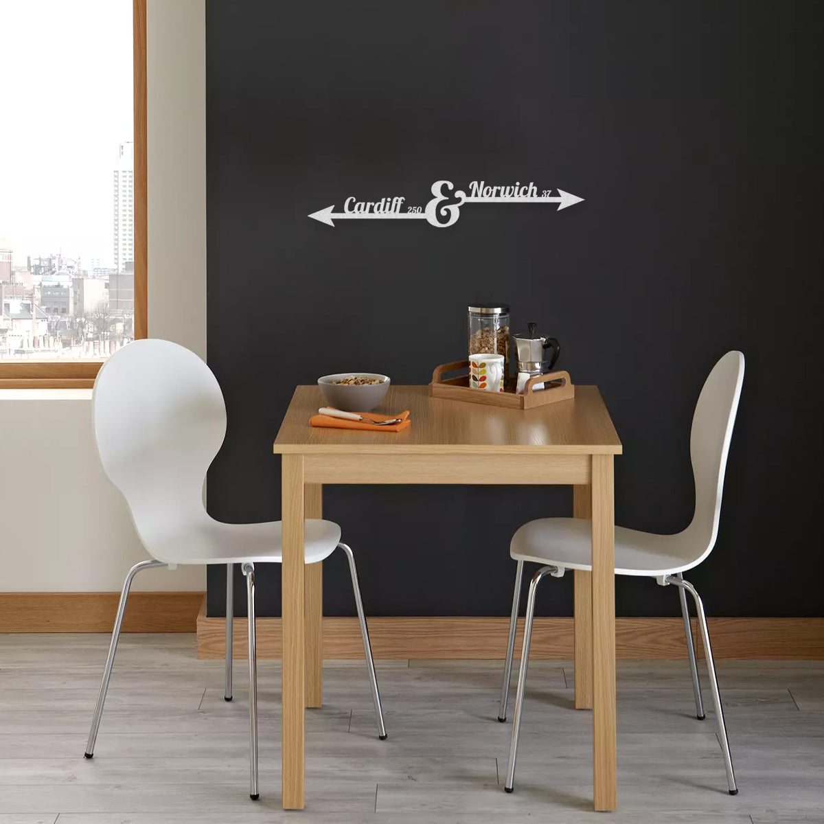 Made from durable materials, each sign is crafted to your specific details. Simply provide your home town, your partner's home town, and the distances you are from them, and we'll do the rest. The result is a beautifully designed and personalised street sign that serves as a lasting reminder of your love and journey.