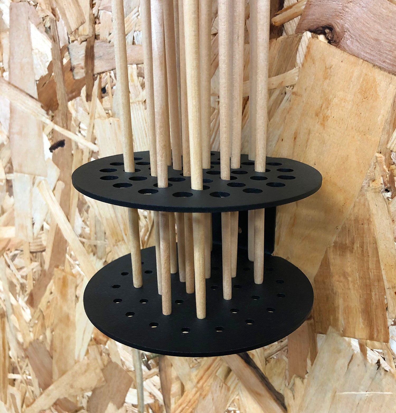 Designed to be both functional and stylish, this paint brush storage holder will complement any office or studio décor. The sleek design and black finish give it a professional and modern look that will match well with any style. The steel construction ensures that it is built to last and withstand daily use, so you can be sure it will be a long-lasting addition to your workspace.