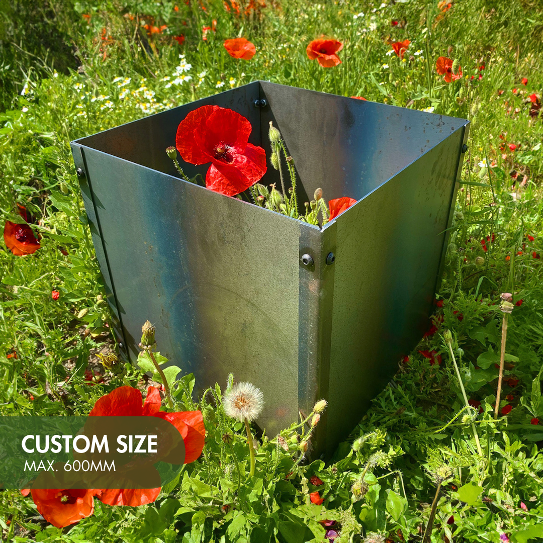 Transform your garden into a stylish, modern space with our Custom-Sized Rustic Steel Cube Planter. Perfect for creating clean borders around trees, flowers, shrubs, or as a standalone showpiece filled with stones and succulents. Designed with versatility in mind, this planter adds a sleek, industrial look to your garden that will develop a natural rust patina over time, enhancing its rustic appeal.