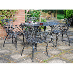 The table and chairs set constructed with quality materials and meticulous attention to detail. This table set promises both durability and aesthetic pleasure for years to come. Suitable for casual dining or leisurely relaxation, it invites moments of joy. It can be a cherished centrepiece for outdoor enjoyment for years to come.
