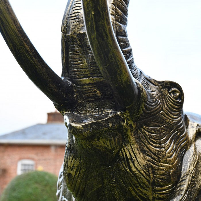 Crafted with unparalleled artistry, this grand sculpture captures the magnificence of the elephant in exquisite detail. Made from premium aluminium and adorned with sophisticated black and gold finishes, the figure radiates with a stunning bronzed effect, adding a touch of elegance to any space.