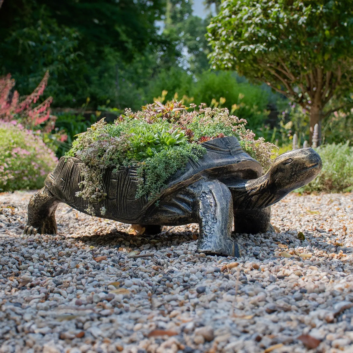 Crafted from high-quality cast aluminium, this tortoise planter offers both durability and elegance. The hand-finished bronze effect gives the sculpture a rich, timeless appearance that complements any outdoor décor.