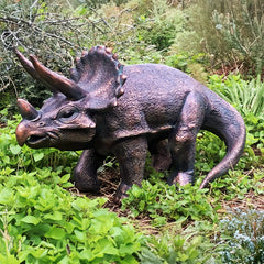 The detailed craftsmanship of the statue captures the power and presence of the Triceratops, making it a must-have for any dinosaur enthusiast or lover of outdoor art.