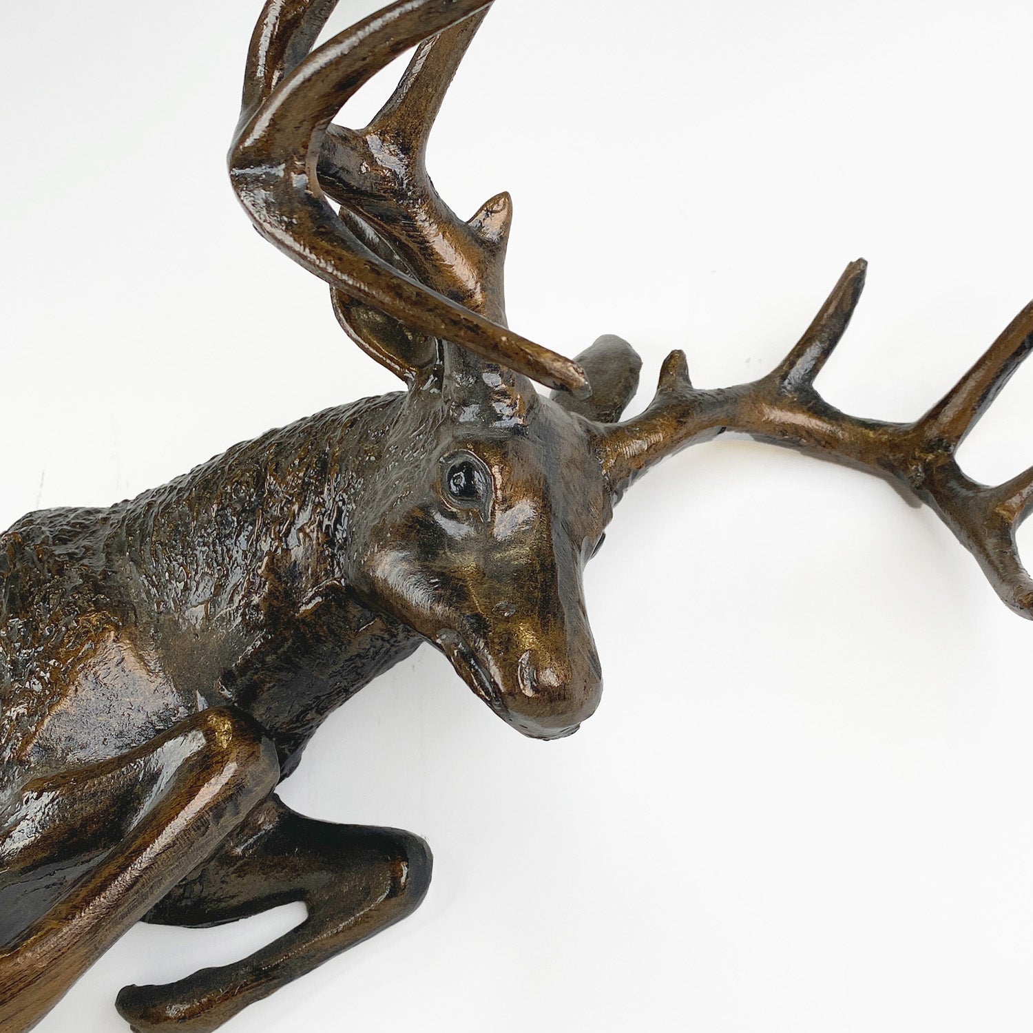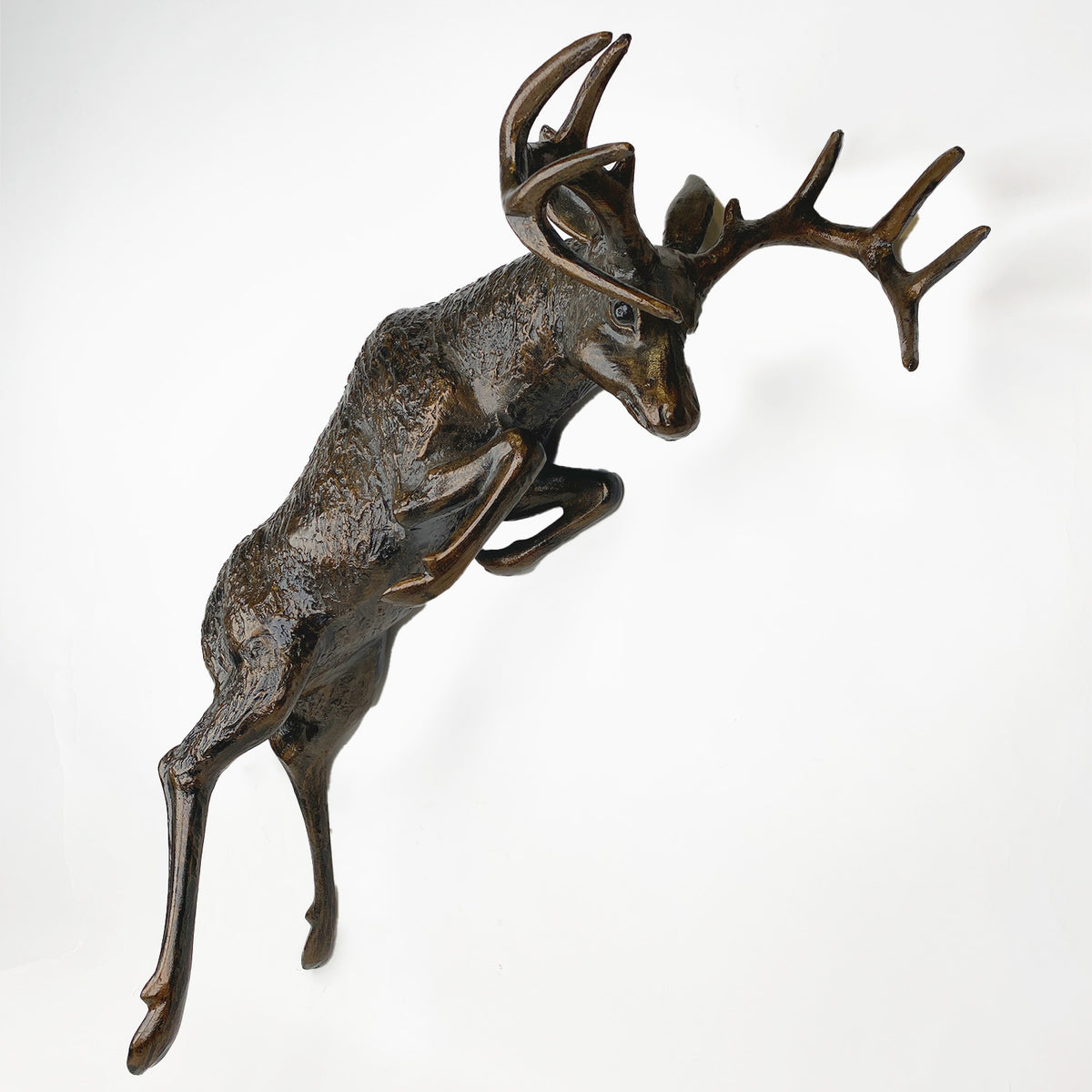 This striking Wall Mount Stag Bronze Effect Sculpture comes from the distinguished Fergus McArthur collection of Natural Life Sculptures. This captivating piece portrays a majestic stag in a mid-gallop pose, exuding strength, grace, and vitality.