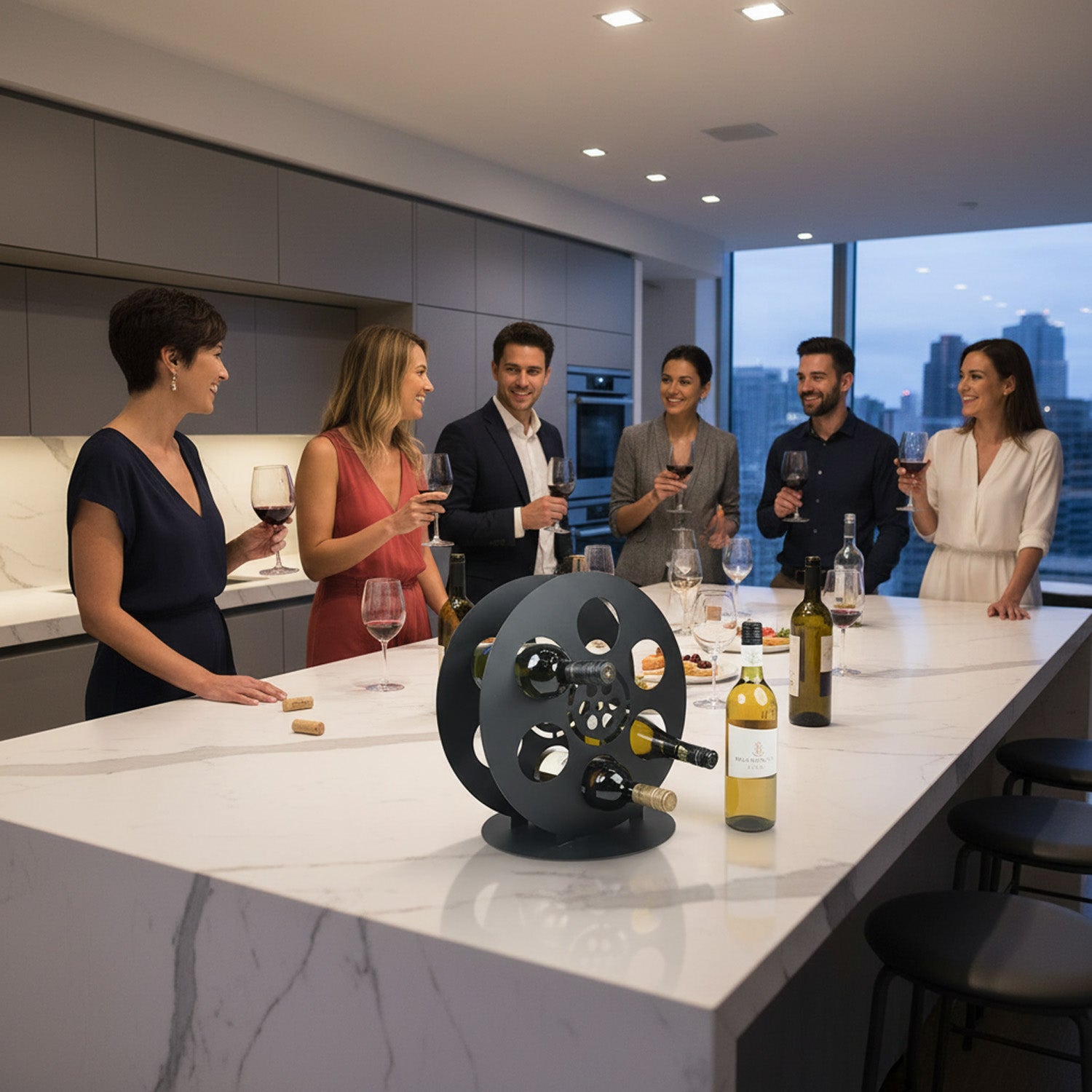 Do you love movies and enjoy drinking wine? If that's the case then this product is absolutely for you! This stunning wine rack is styled like an old film reel. The rack can hold up to 6 standard, UK-sized bottles of wine.
