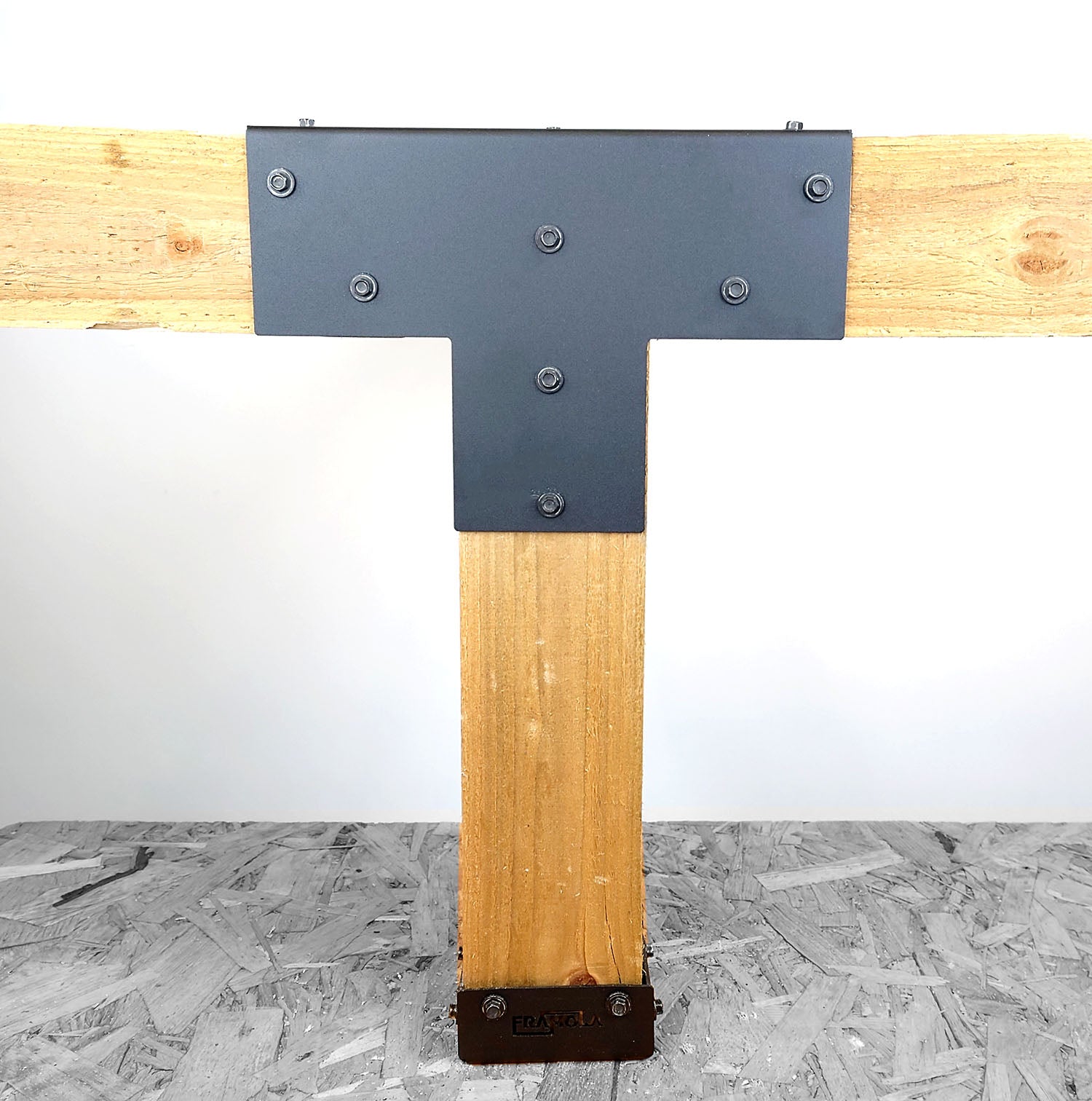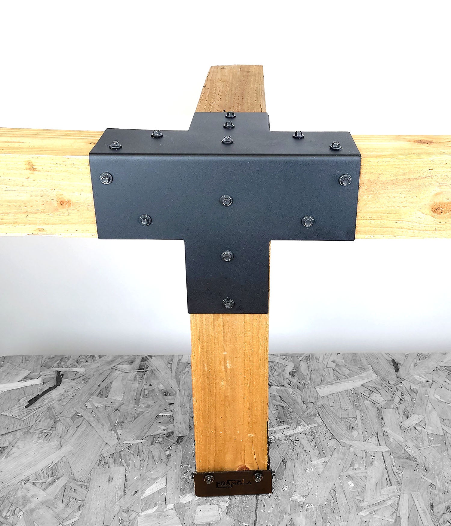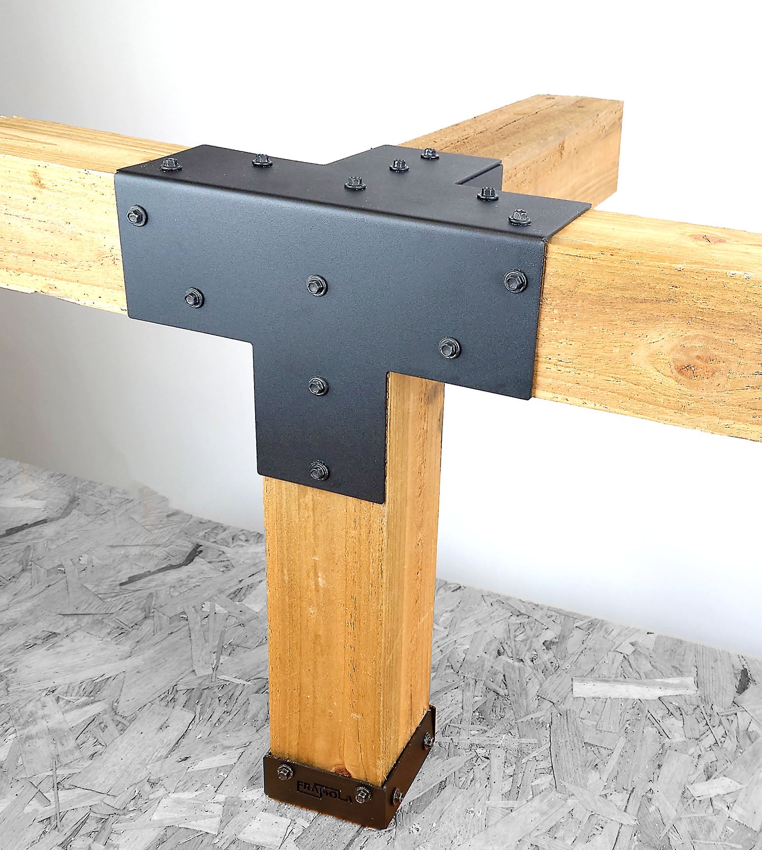 The Framola system is designed to make the construction and installation of Pergolas and Garden Structures as simple as possible. This Straight T-Shaped Bracket is suitable for connecting 4 pieces of wood to make a multi-bay Pergola, Pagoda or Gazebo. It can connect an upright post and 3 horizontal posts, forming a T shape at the top.