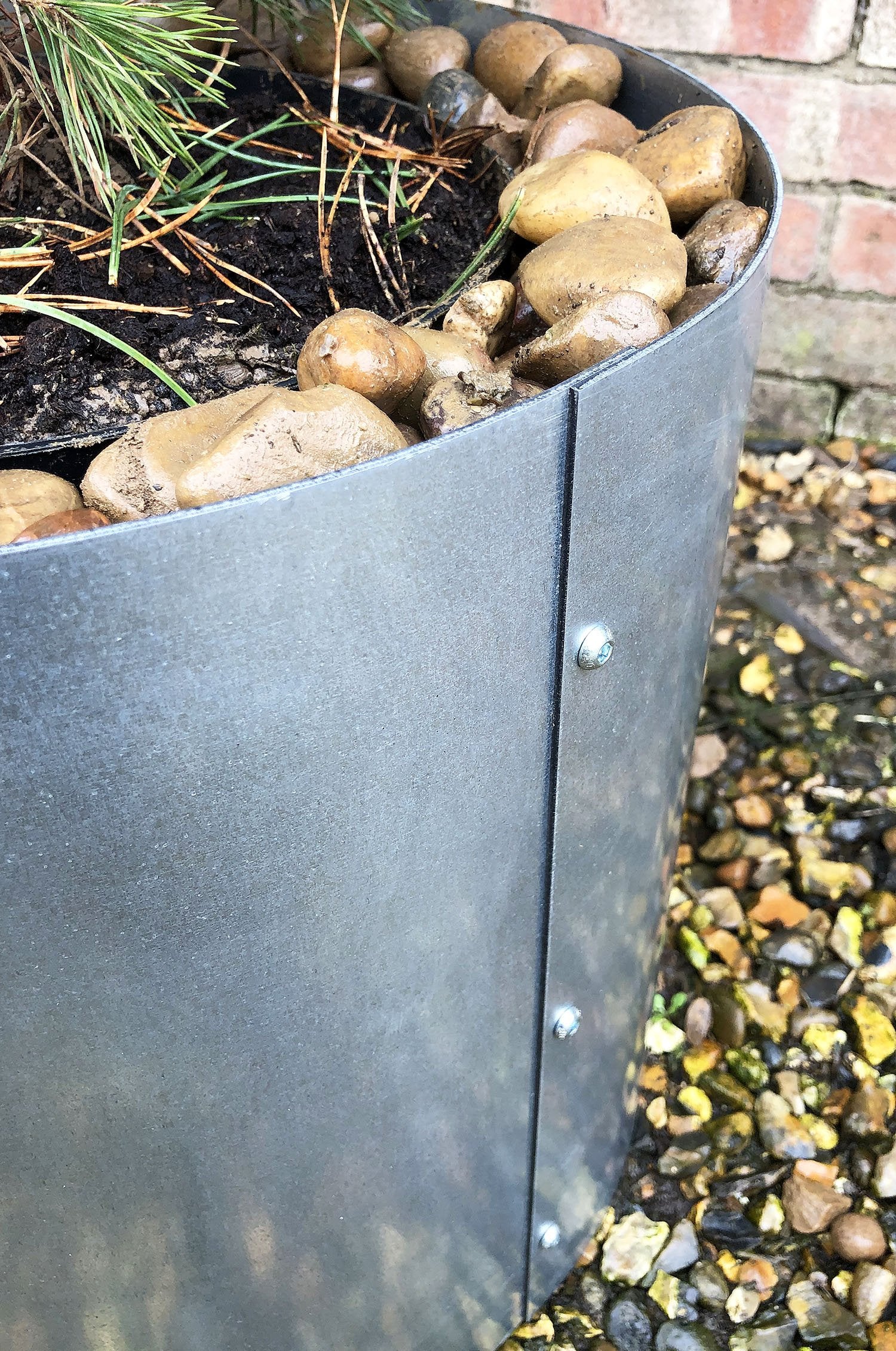These galvanised steel planters don't have a base, so it can be used to provide a border around existing bushes, flowers and trees. You just slot the planter over top of them!