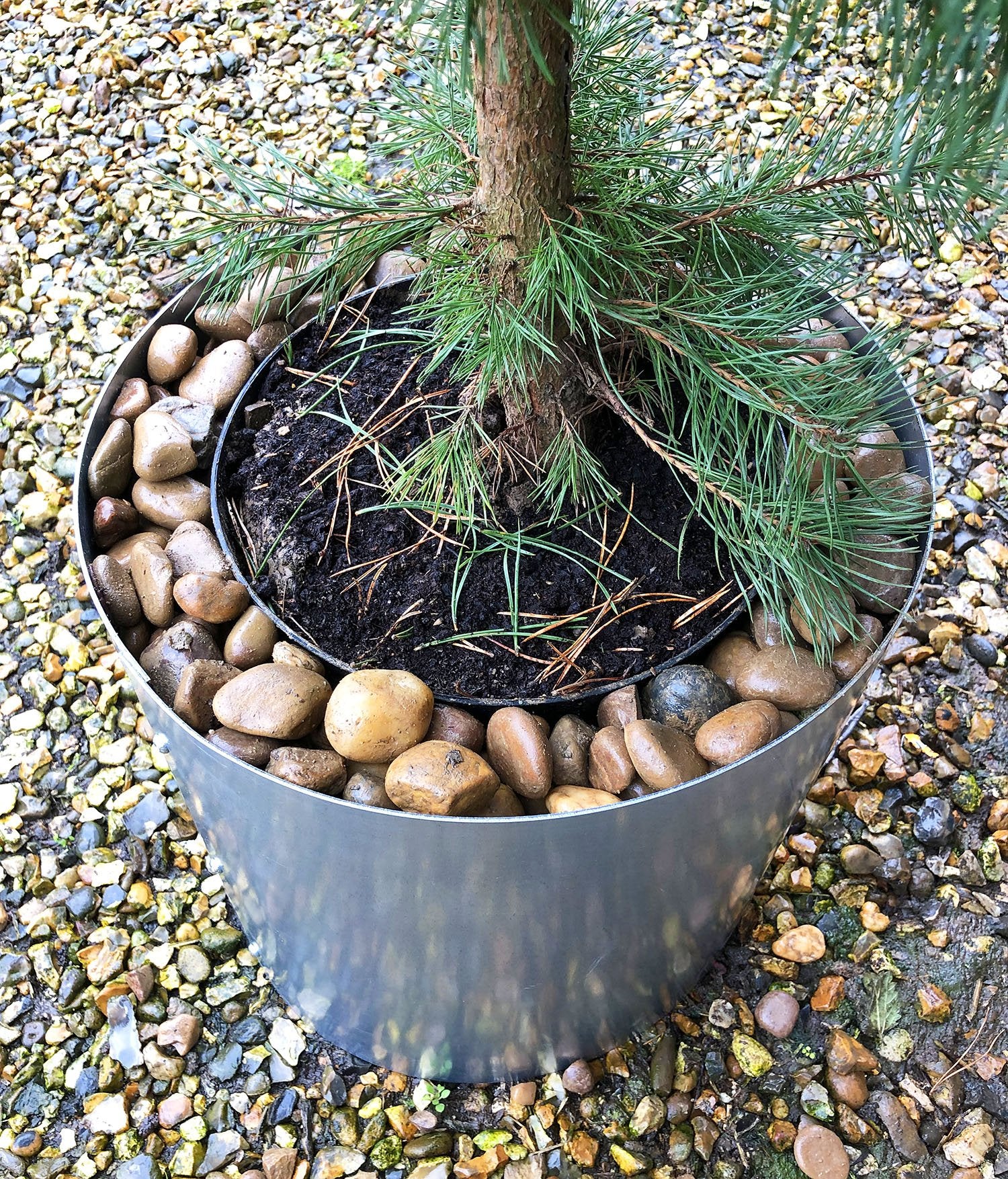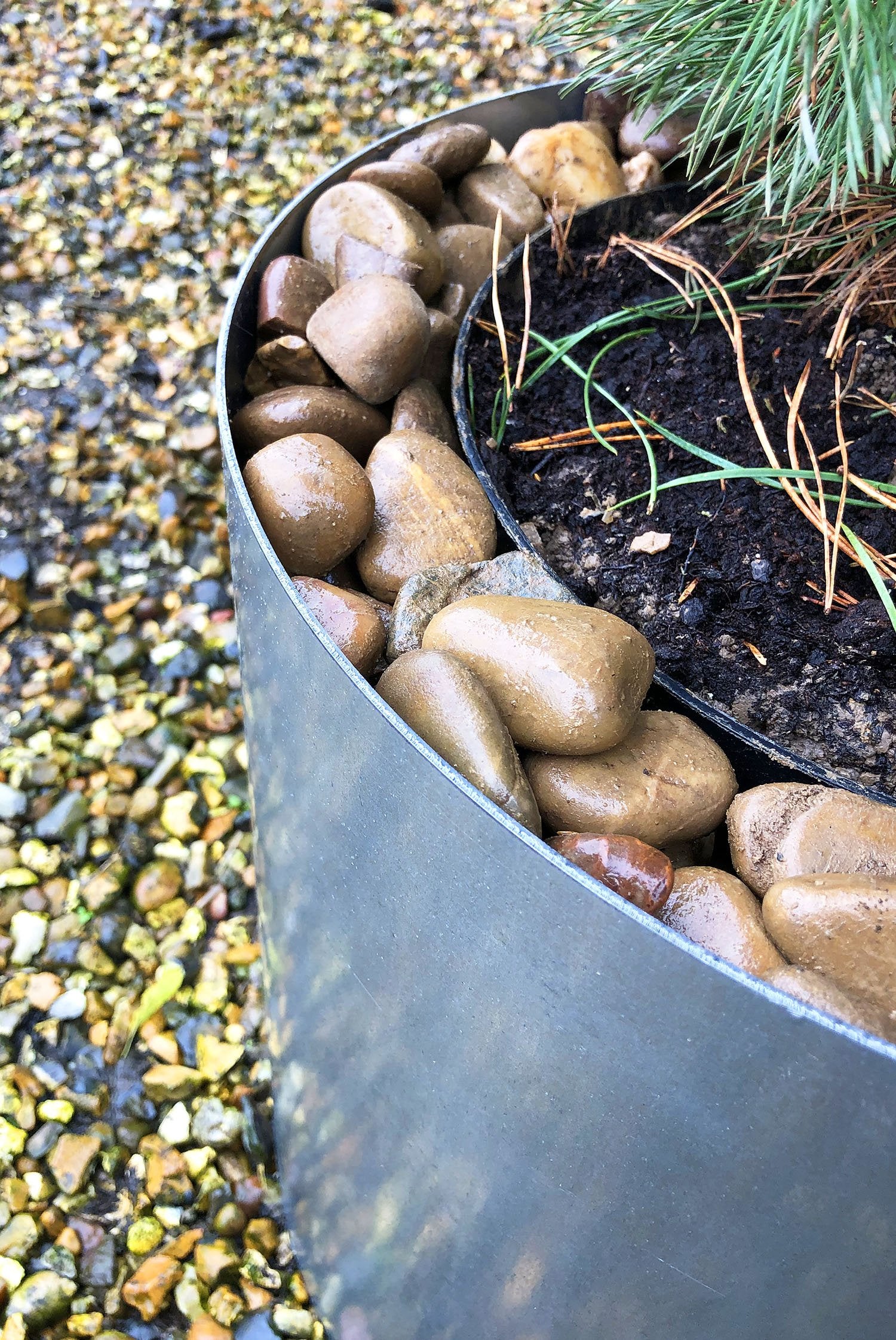 Why not add some stones to it and a few small plants, or add a small tree and fill it with soil? As there is no base on these you can use it on water features or even use it to create unique water features. The possibilities are endless with one of these planters.