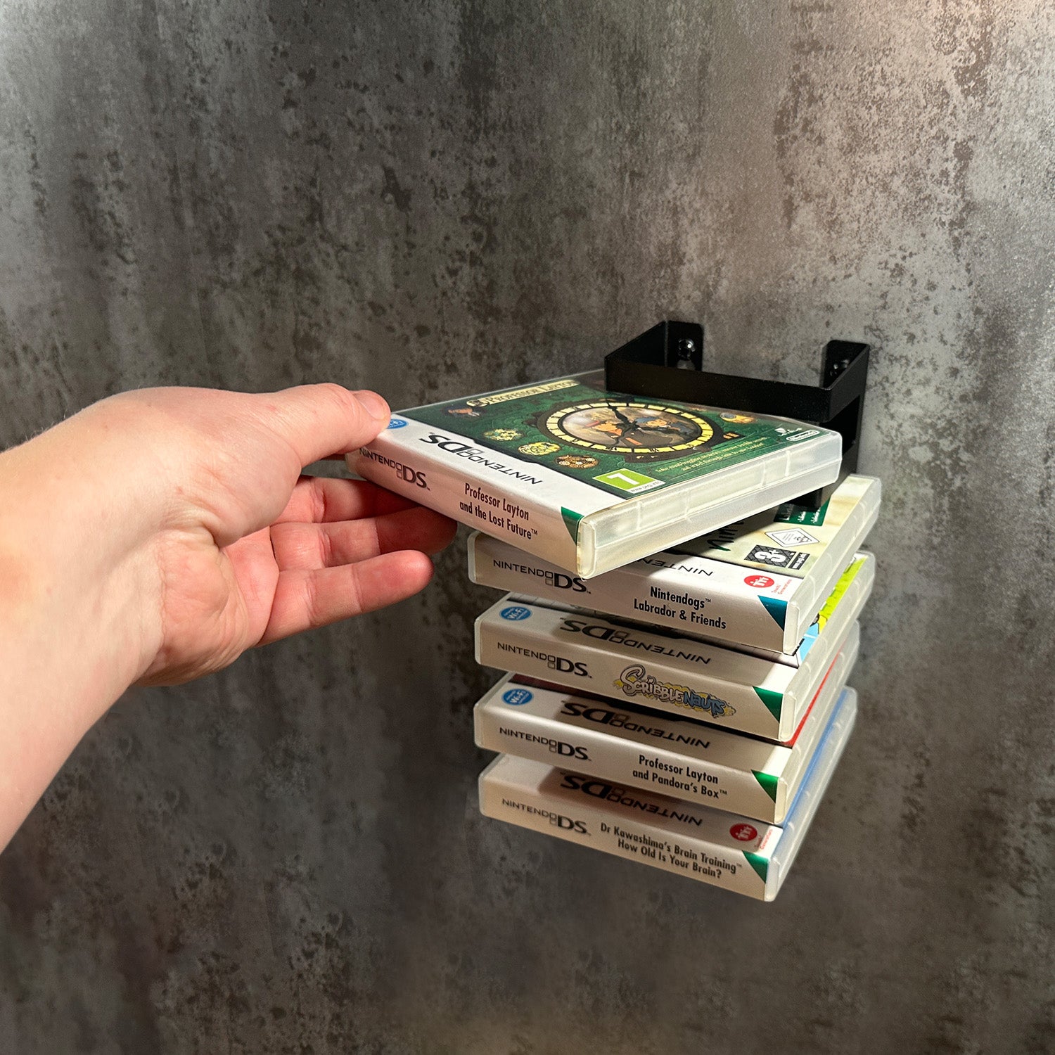 Designed to hold up to five Nintendo DS or 3DS game cases, this compact tower fits perfectly in any gaming setup. Whether installed in a bedroom, gaming room, or man cave, it keeps your favourite games accessible and neatly displayed.