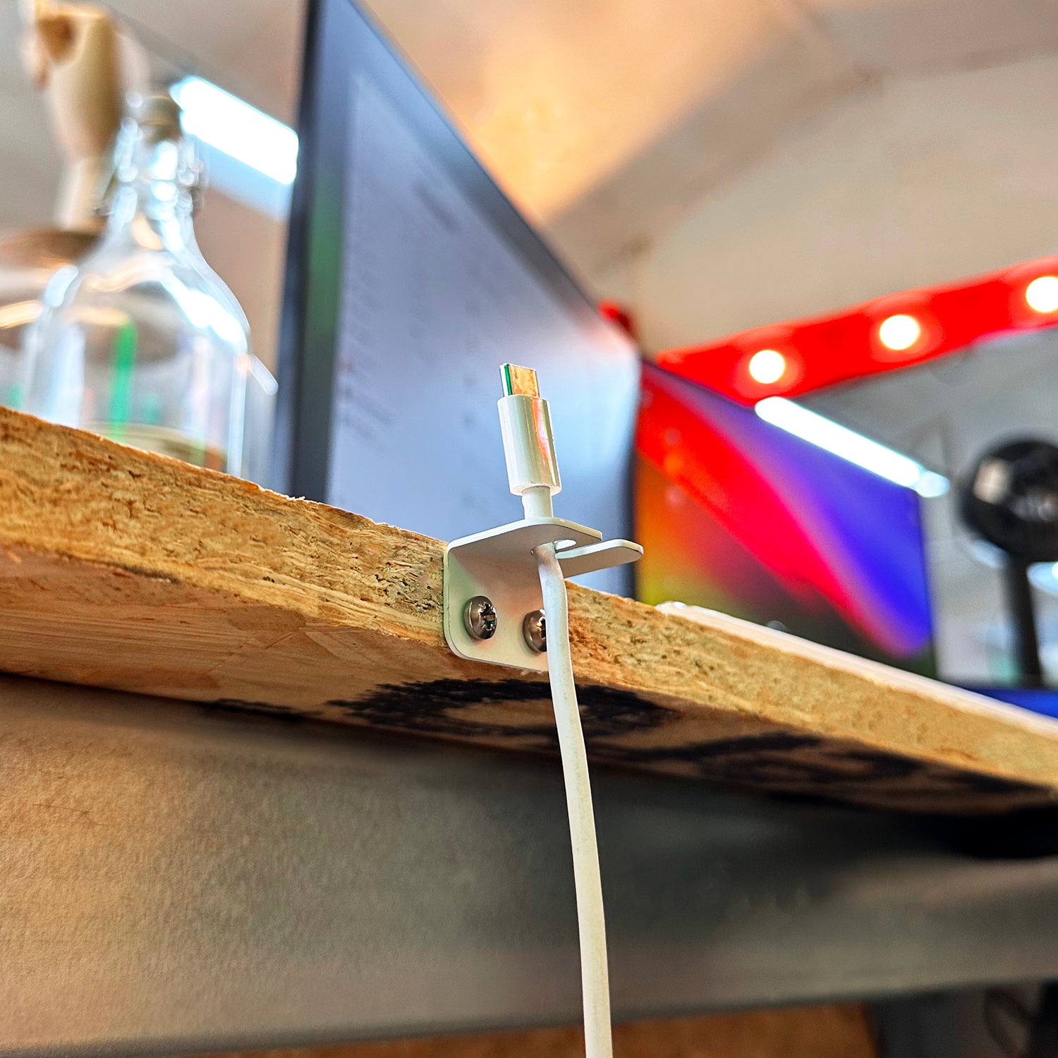 These brackets are incredibly easy to install. You can install them so that the screws are at the top or hidden by the cable as shown in the photos. Each one just requires two screws to hold it in place. The Cable & Charger Holder brackets come in a pack of 10, allowing you to store a lot of cables easily.