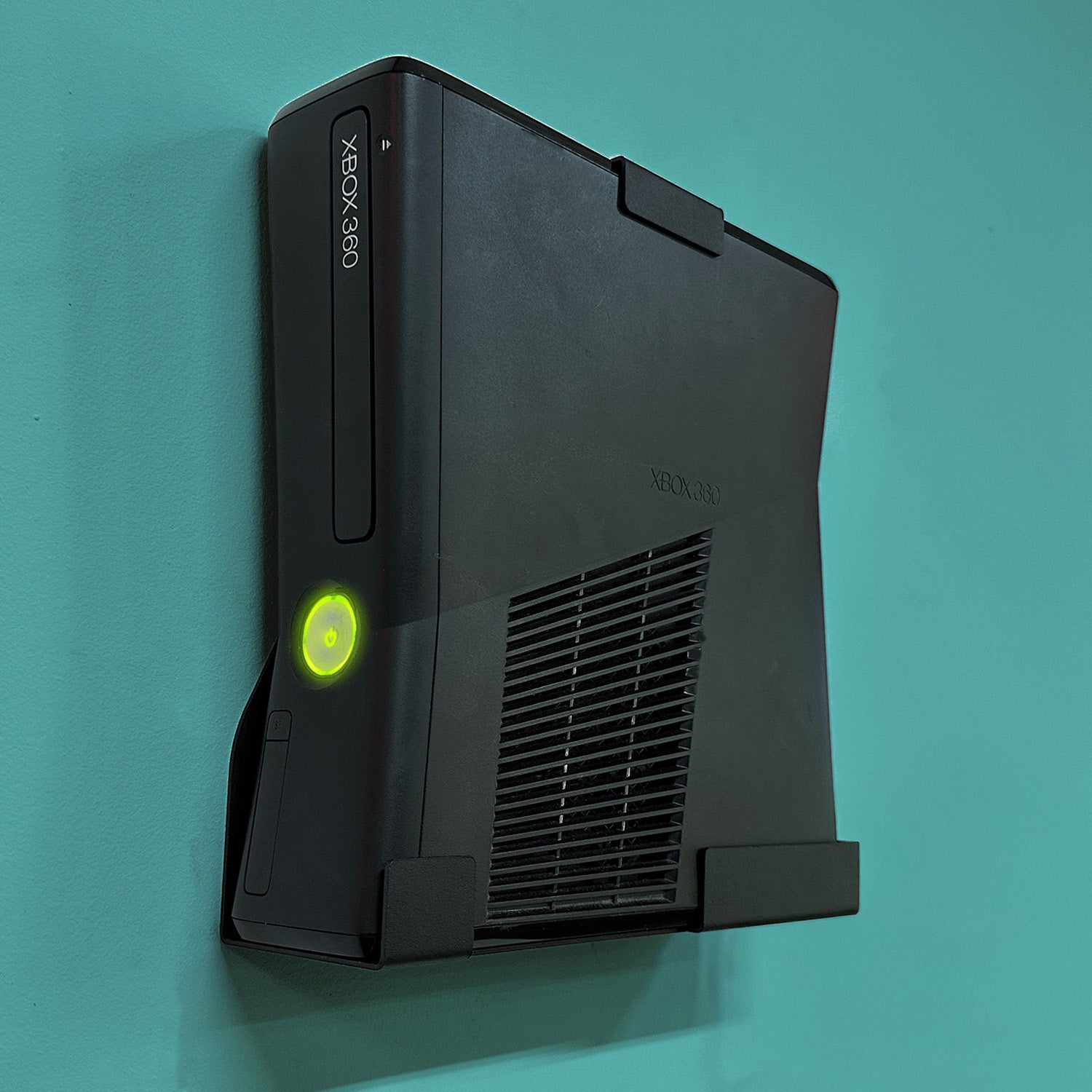 Installation is quick and easy using just three screw holes. Once fitted, simply slide the Xbox 360 Slim console into place from the side. The front remains accessible, allowing you to open the disc tray, press the power button, and use USB ports without restriction. Ventilation holes on the base and side support airflow and help prevent overheating.