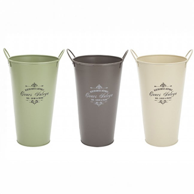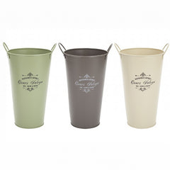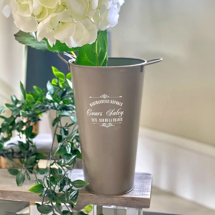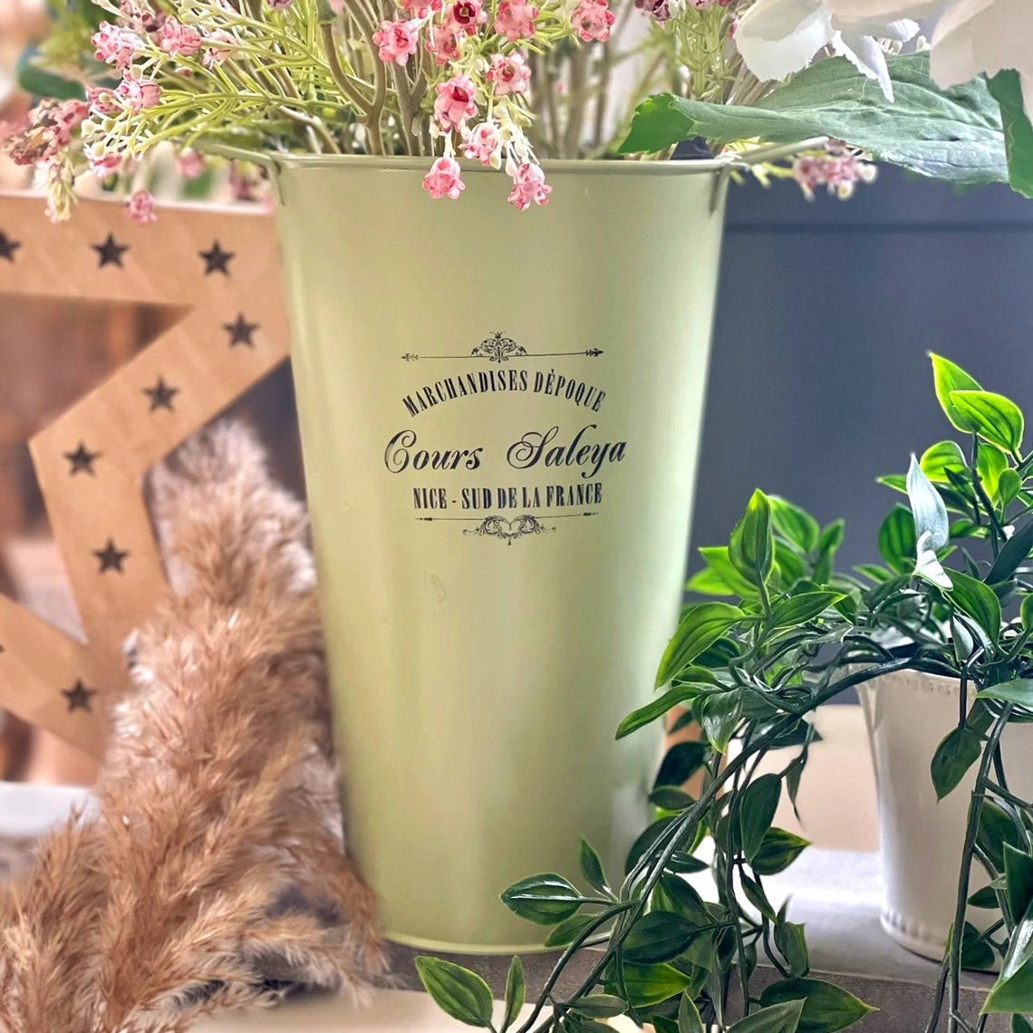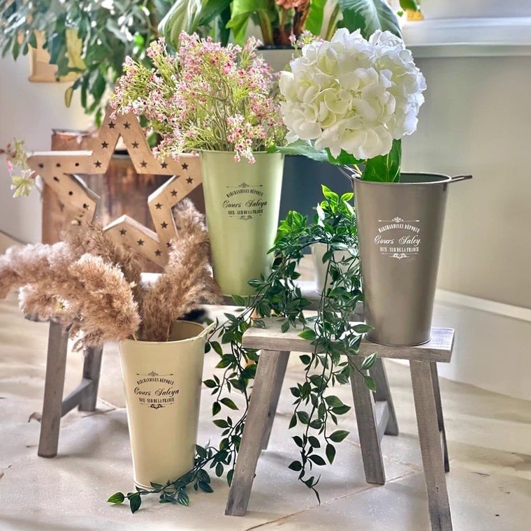 Add a touch of rustic charm to your garden or home with these Vintage-Design Flower Bucket Planters. Styled in a tall, vintage bucket design, these planters are perfect for showcasing your favourite floral displays. Available in three timeless colours – green, cream, and grey – each bucket exudes a French countryside feel with its "Cours Saleya" emblem, referencing the famous flower market in Nice, France. Whether you’re using them in the garden, on a patio, or as part of a window box display, these planters add a delightful, old-world aesthetic.