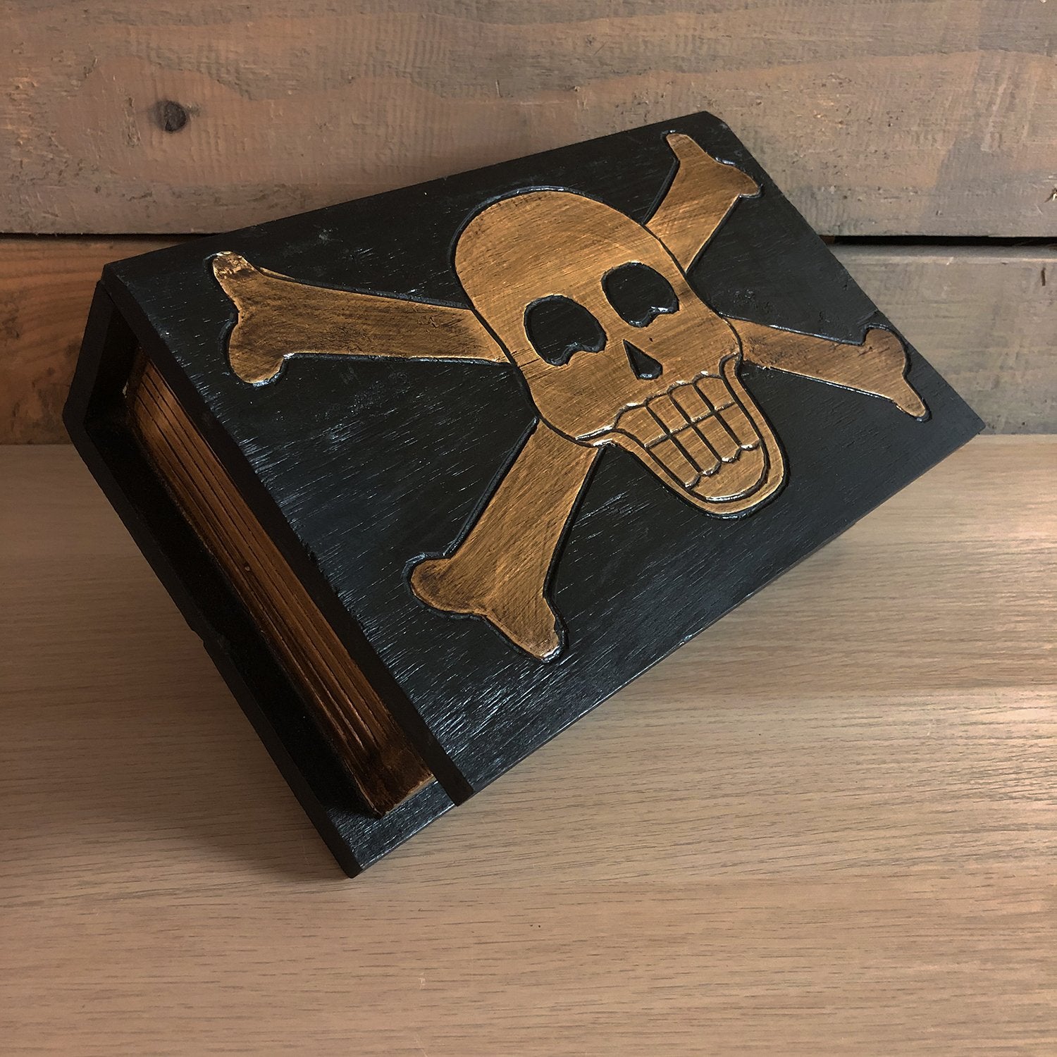 Unlock the spirit of adventure and embark on a treasure hunt with The Goonies Skull and Crossbone Secret Treasure Box. This awe-inspiring piece of homeware is a quirky must-have for any fans of swashbuckling and high-seas escapades. Crafted from wood, this storage box features a rustic hand-carved pirate-style skull and crossbones design on a hinged lid, reminiscent of the legendary treasures hidden by pirates of old. Styled like a vintage book plucked from the depths of Davy Jones' Locker, it adds a touch of mystery and excitement to any space.