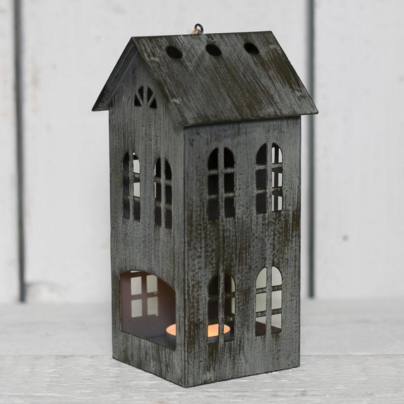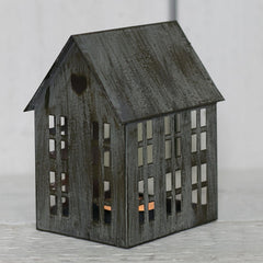 This distressed rustic-style metal house tealight holder will add a hint of vintage beauty to any room. The charming, worn-down grey walls of this house-shaped lantern create an inviting and cosy atmosphere. Its unique design ensures that it not only serves as a practical tealight holder but also as a stylish decorative piece.