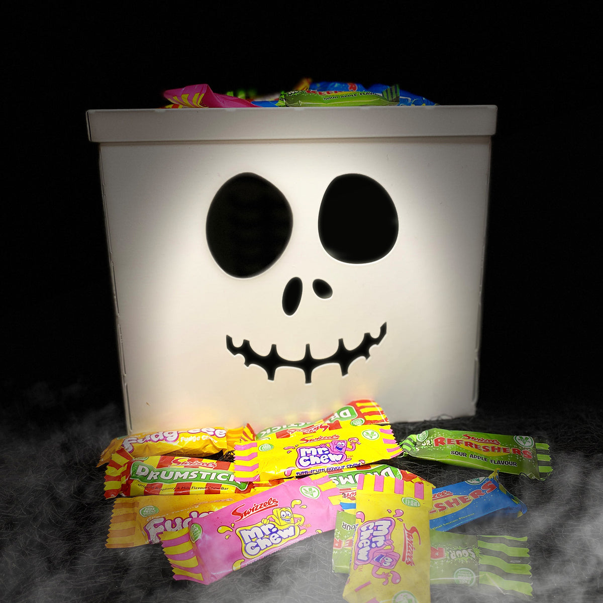 Keep your treats safely stashed away using this Skeleton-themed Halloween Box. Great for both storage, and using as a candlebox.