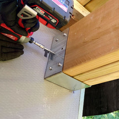 To install, simply screw the back of the rafter bracket to the upright wood or wall you are adding a joist to, using the 8 screw holes on the rear of the item. Once securely fixed to the wall, surface or upright, place the wood into the bracket. This should be a case of just lowering the wood gently into the bracket to slot it into place. From here, you can now begin to further secure the bracket to the joist using the 6 screw holes in each side. We recommend using screws that are little under half the width of the bracket to avoid any screw clashes inside the wood.