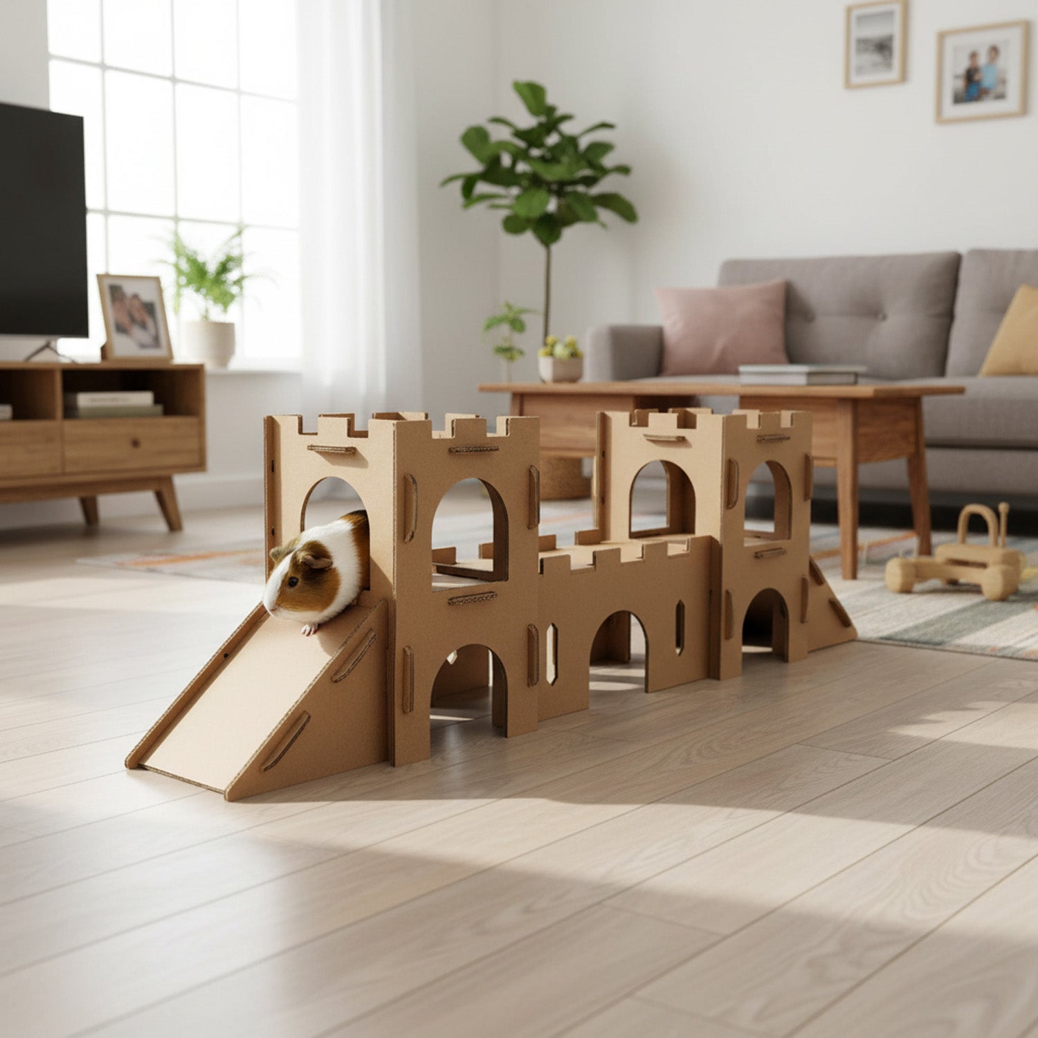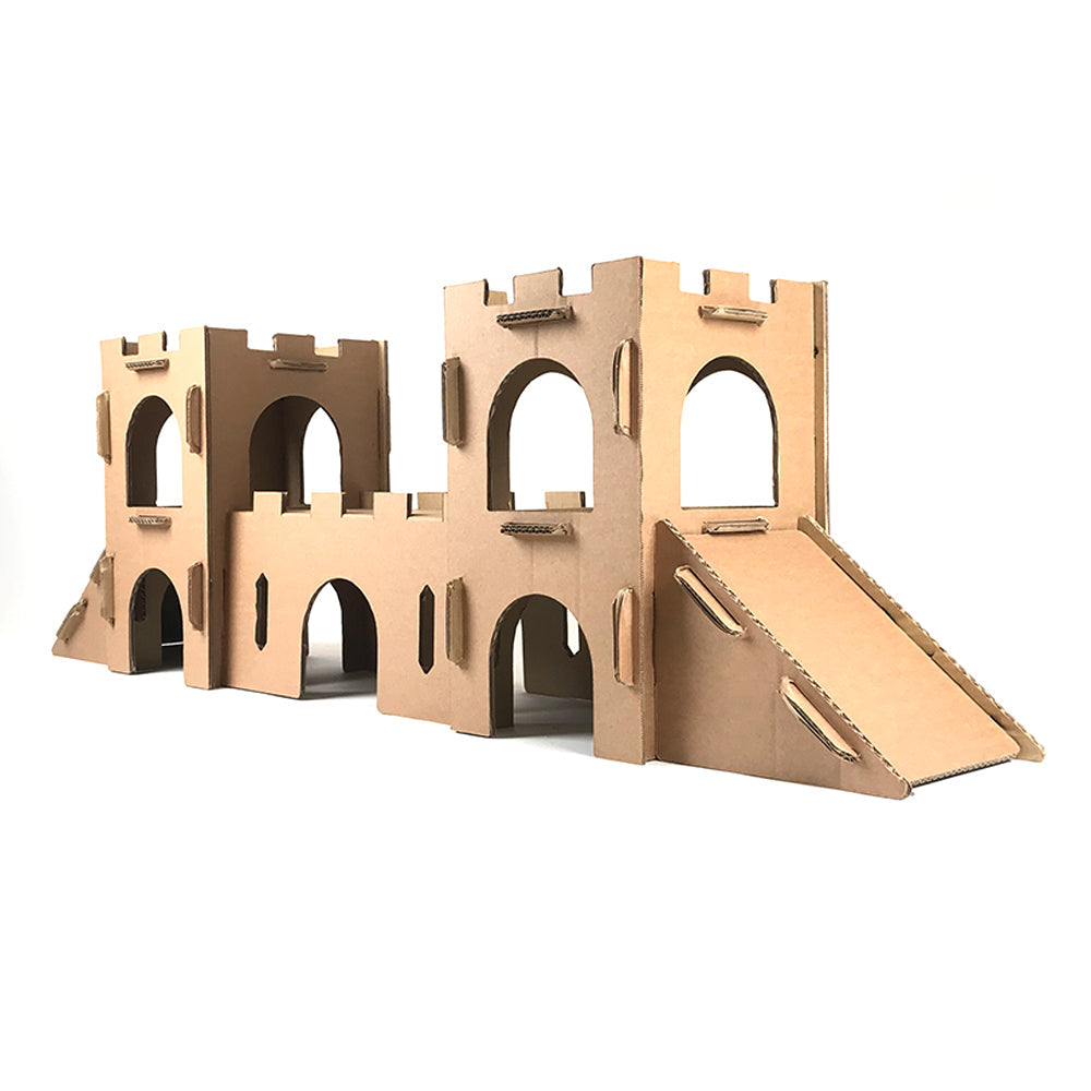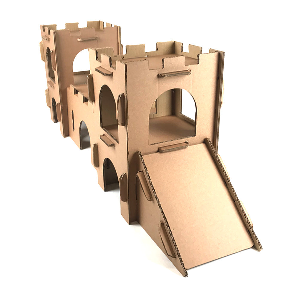 From Jake's Farm Yard comes our cardboard castle for small animals. This unique cardboard construction comes flat pack and takes less than 10 minutes to assemble. The cardboard castle comes in 3 sections that can be slotted into place or used on their own for your animal's enjoyment.
