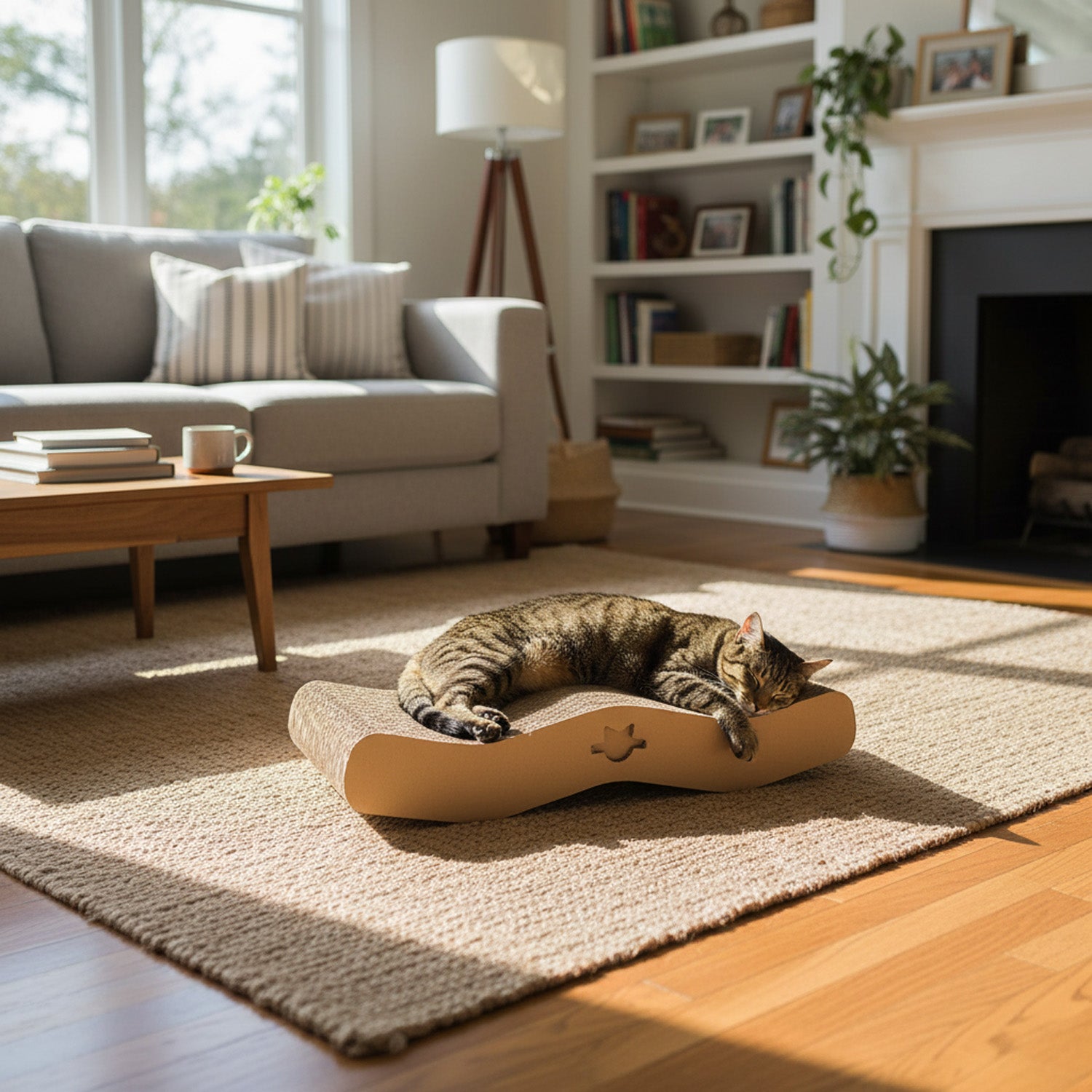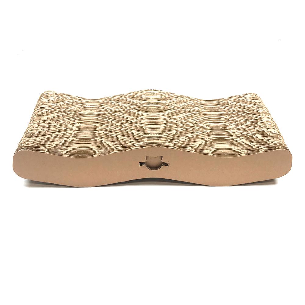 As well as being suitable for lounging, the cardboard-construction makes it perfect for scratching at. Made from 6.8mm thick cardboard, it is durable enough to sustain scratching and rough play for some time. Due to the materials used, the cat lounger is eco-friendly and can be recycled after use.
