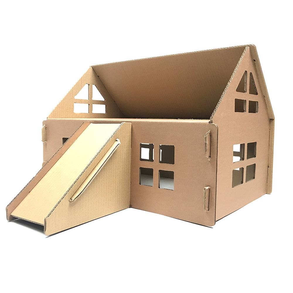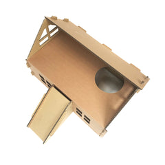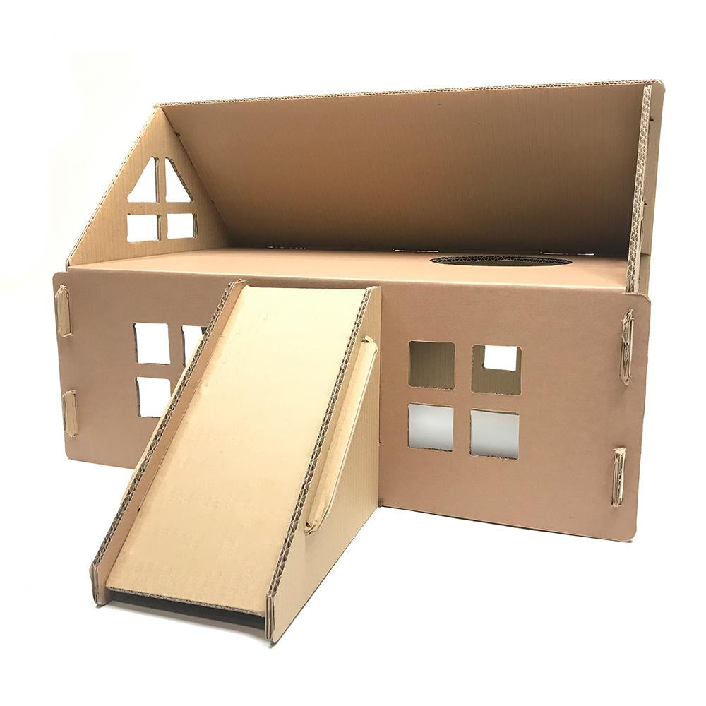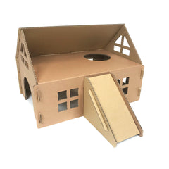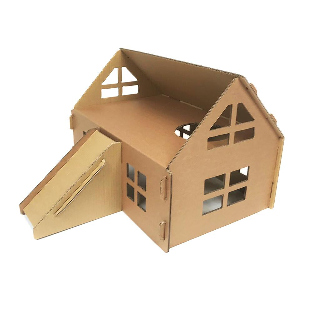 Made from 6.8mm thick cardboard, which is perfect for scratching and rough play. This eco-friendly Cardboard Animal House can be recycled after use.