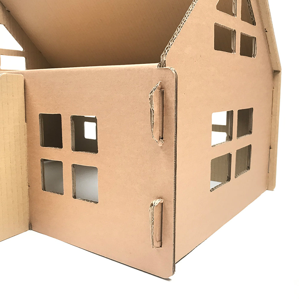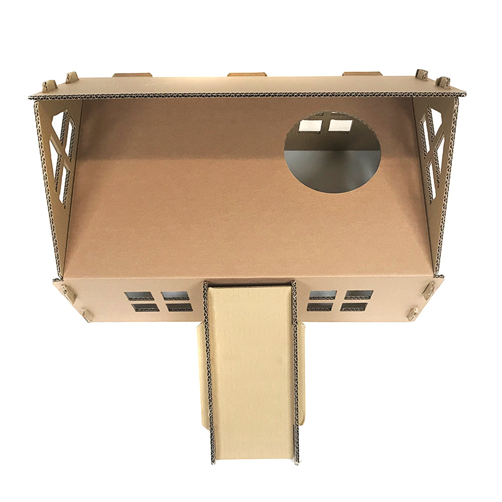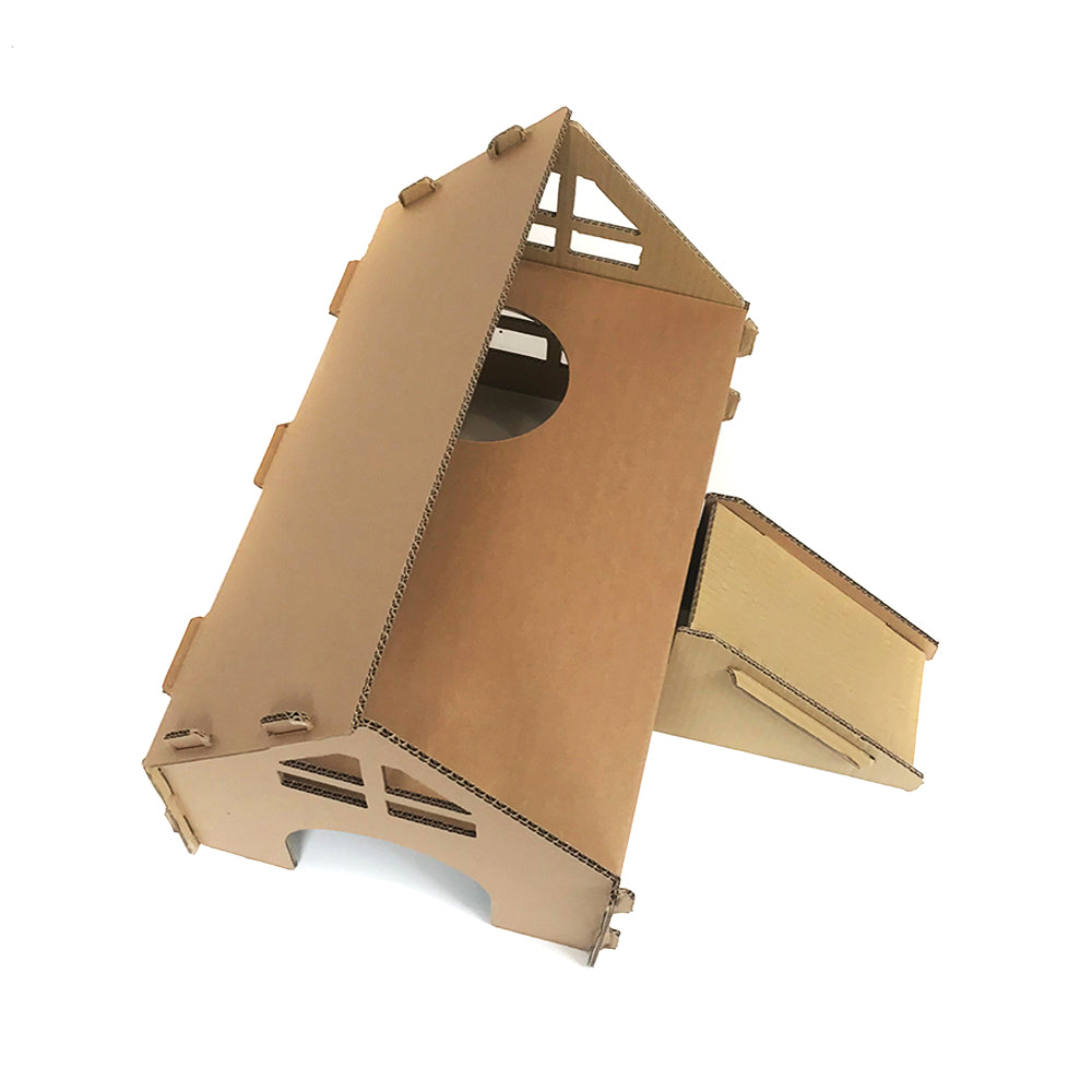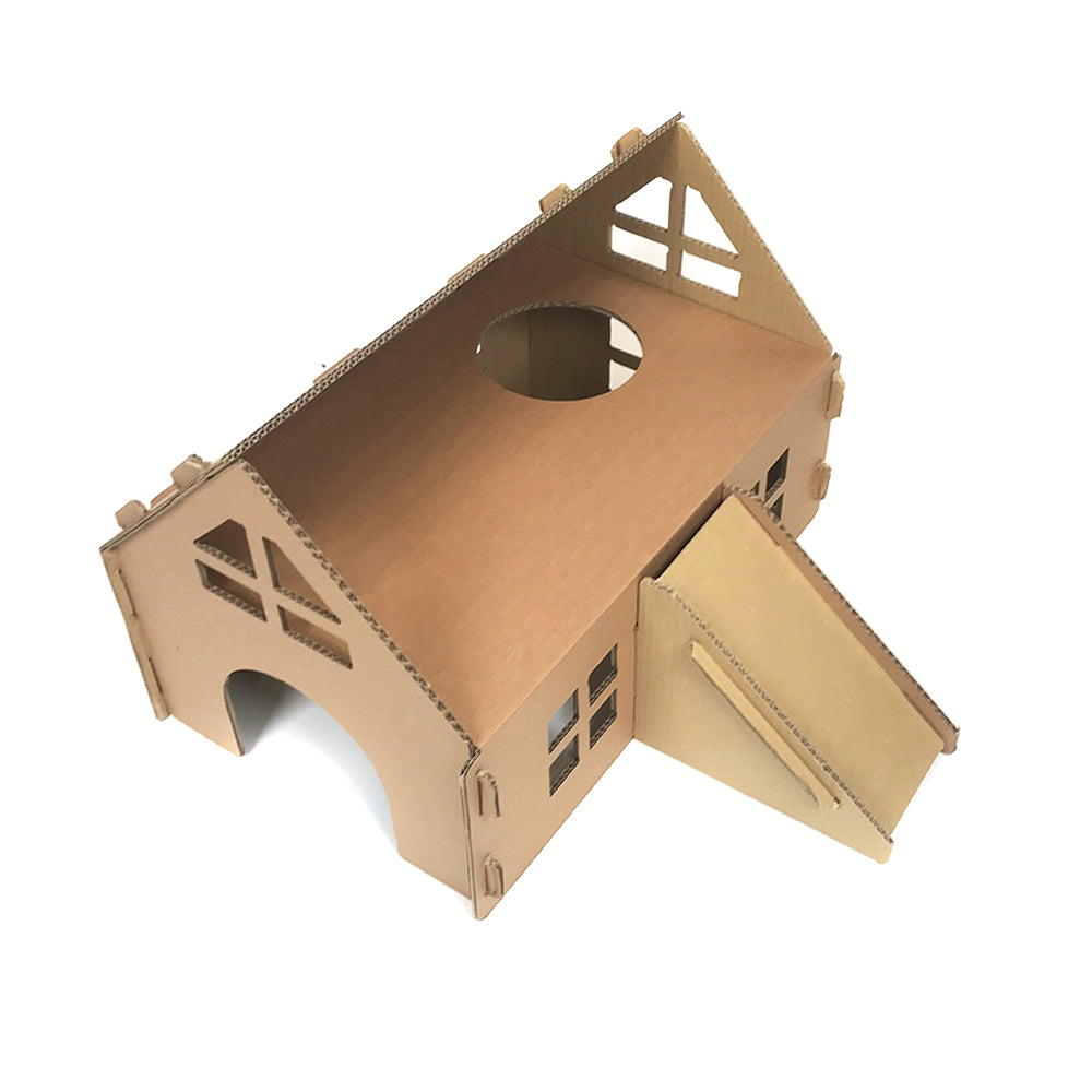 Made from 6.8mm thick cardboard, which is perfect for scratching and rough play. This eco-friendly Cardboard Animal House can be recycled after use.