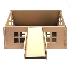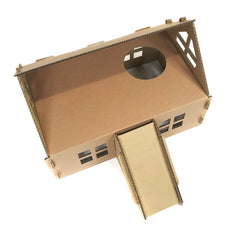 From Jakes Farm Yard comes our unique cardboard small animal house. Let your hamster, gerbil, rat, guinea pig, or any other small animal have a house of their own. This specially designs easy to assemble house lets your small pet experience having their own home. This small animal house offers an upstairs and downstairs experience for your small pet to play in and make their own.