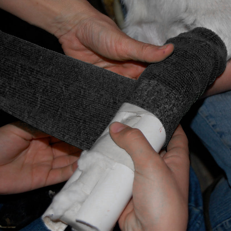 The cohesive bandage only sticks to itself and not to fur or hair, making it a comfortable dressing for the pet. Its breathable design helps the skin heal naturally while staying in place during daily activities. The bandage is also sweat and water-resistant, ensuring it holds its shape even when stretched.