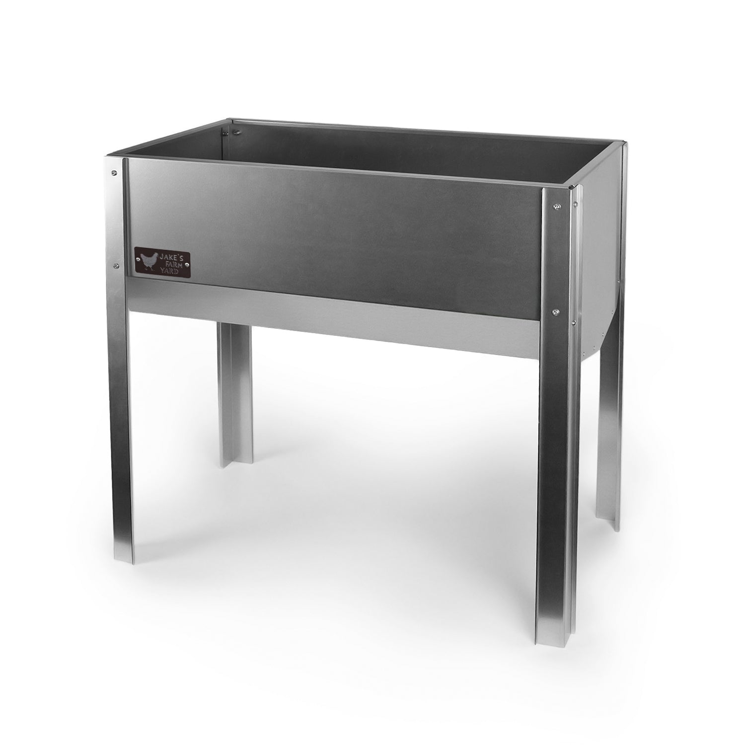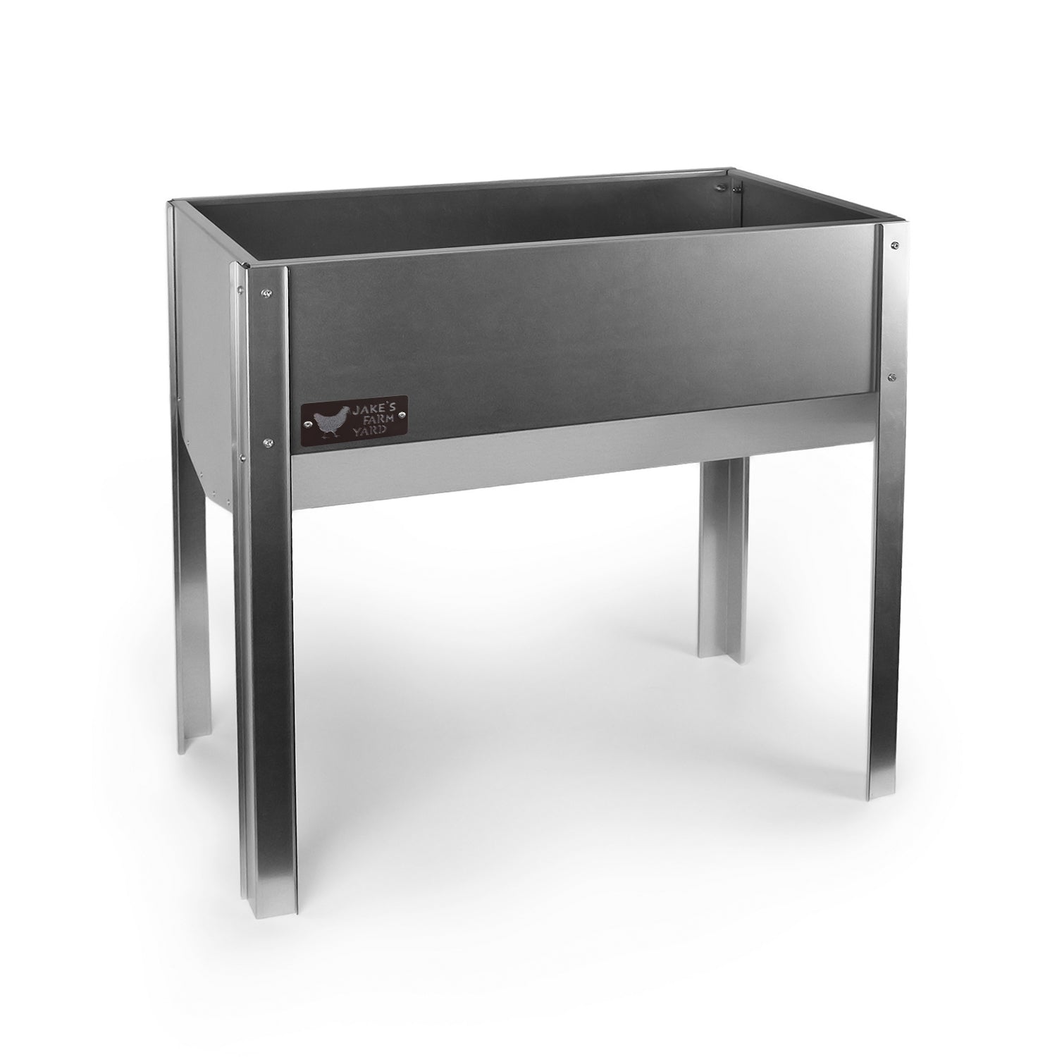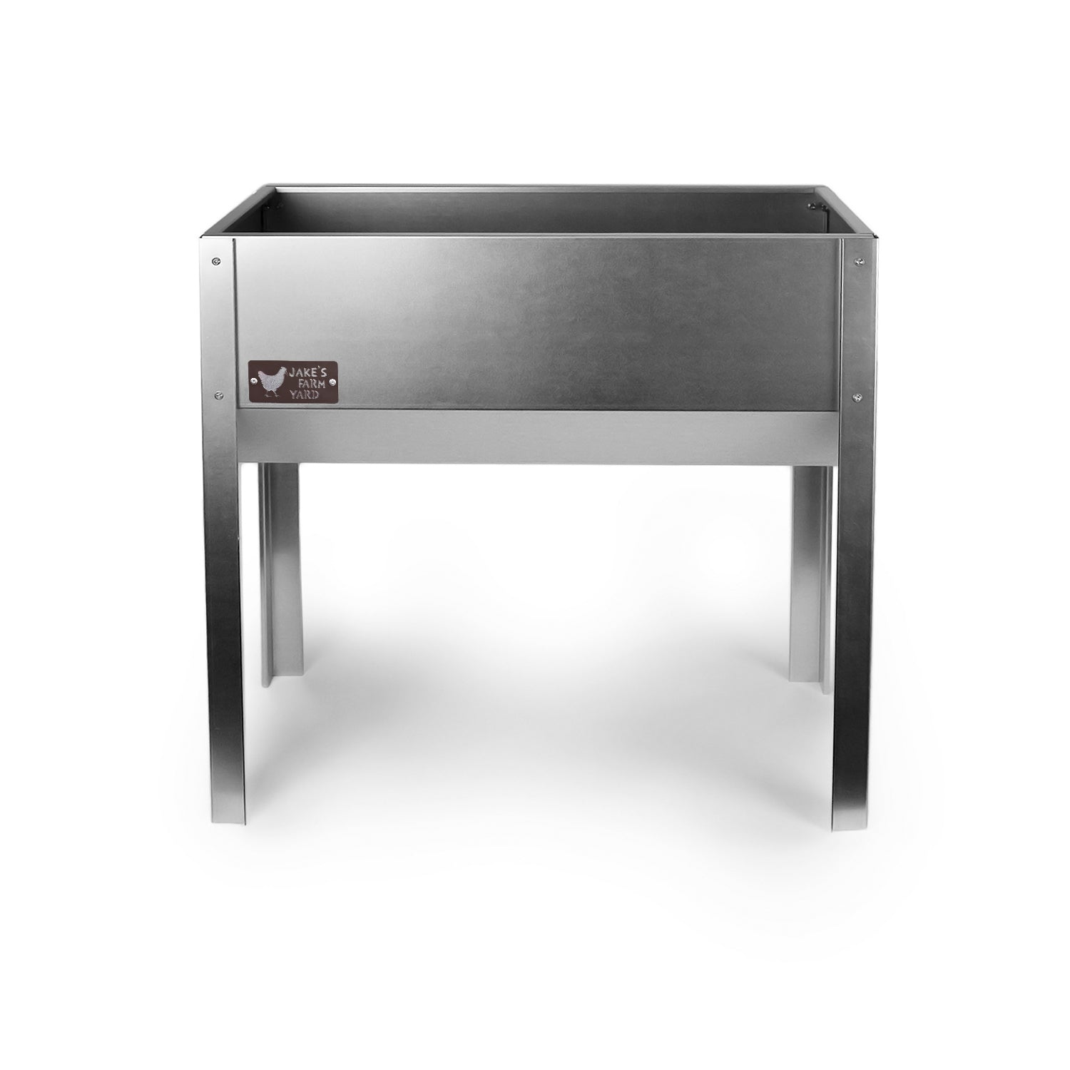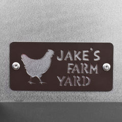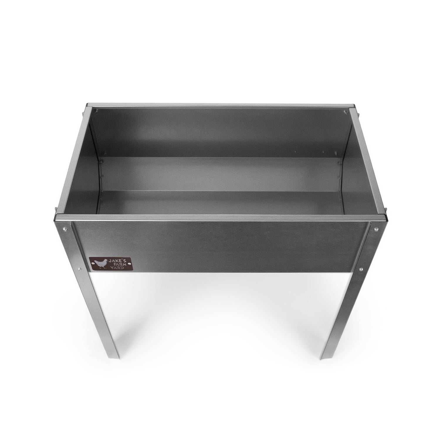 The side of the horse hay feeder features the Jake's Farm Yard logo in a chocolate brown colour which has been riveted onto the body.